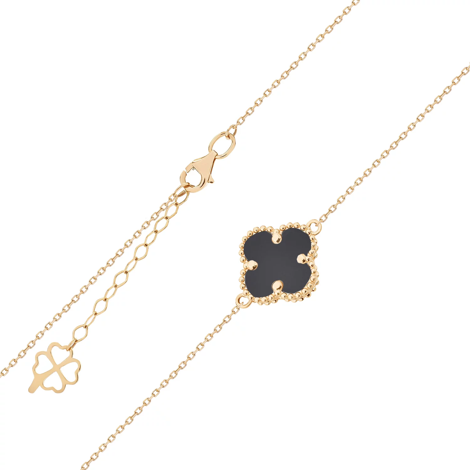 Браслет з червоного золота "Конюшина" з оніксом і перламутром - 1761586