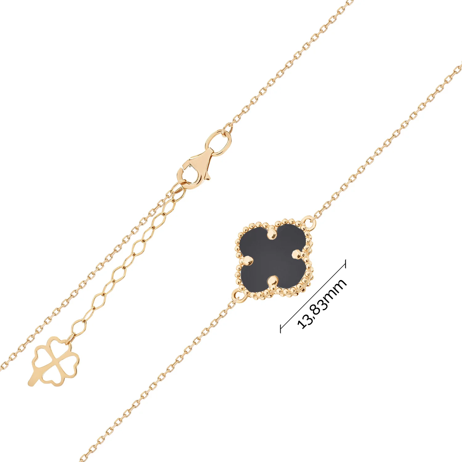 Браслет з червоного золота "Конюшина" з оніксом якірне плетіння - 1824437