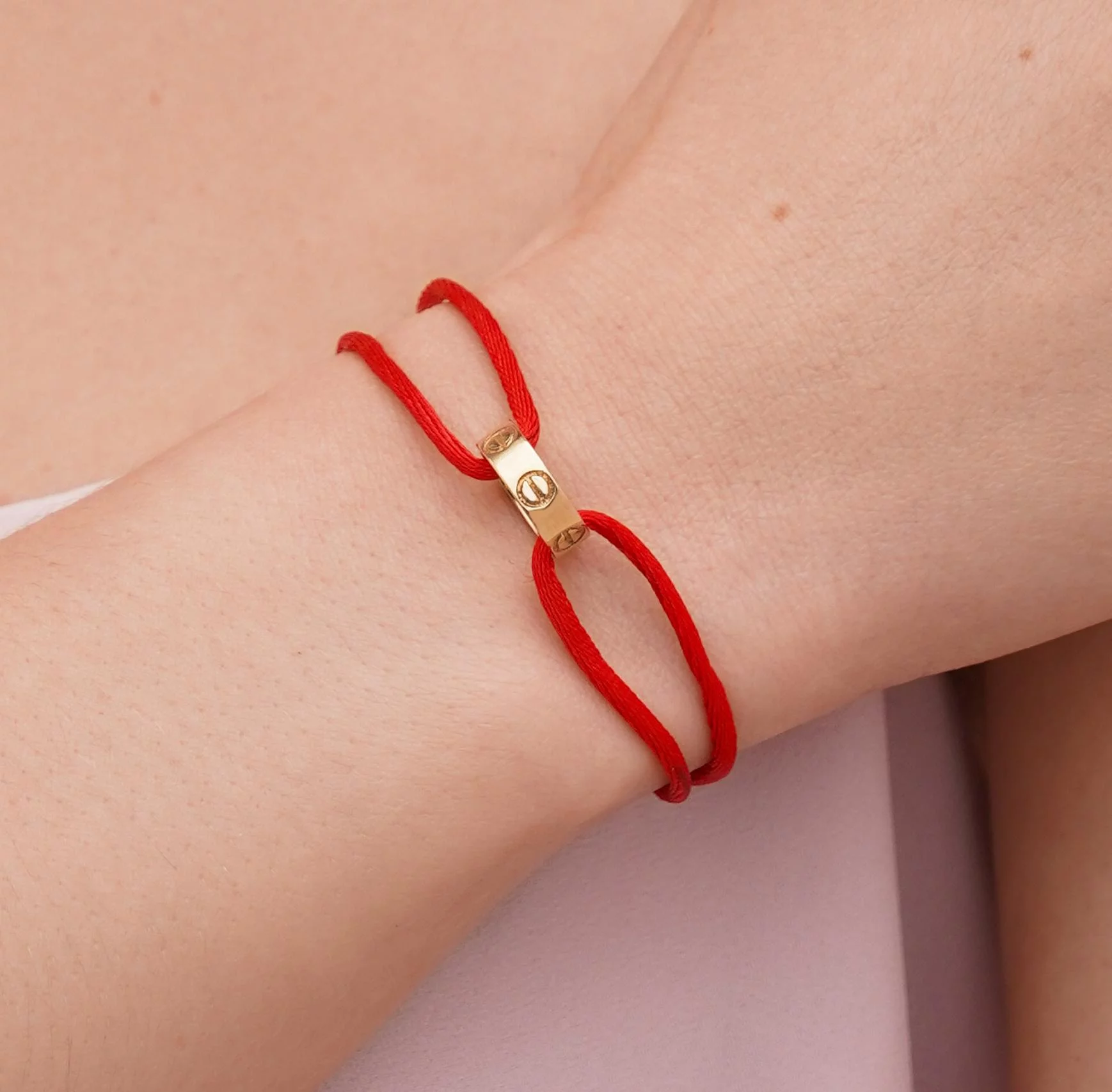 Браслет червона нитка "Love" з червоним золотом - 1585279