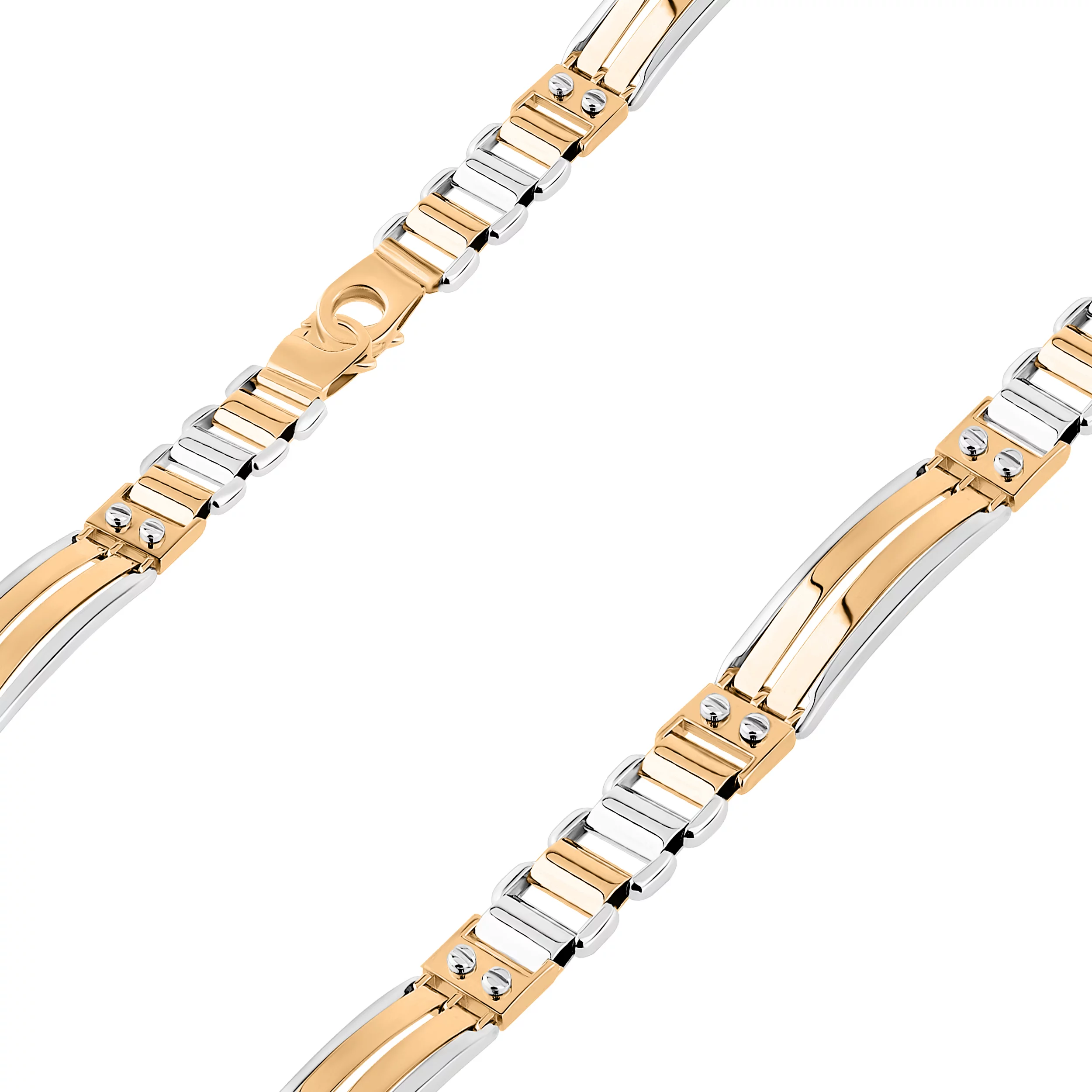 Браслет у мінімалістичному стилі з комбінованого золота з плетінням ролекс - 1945139