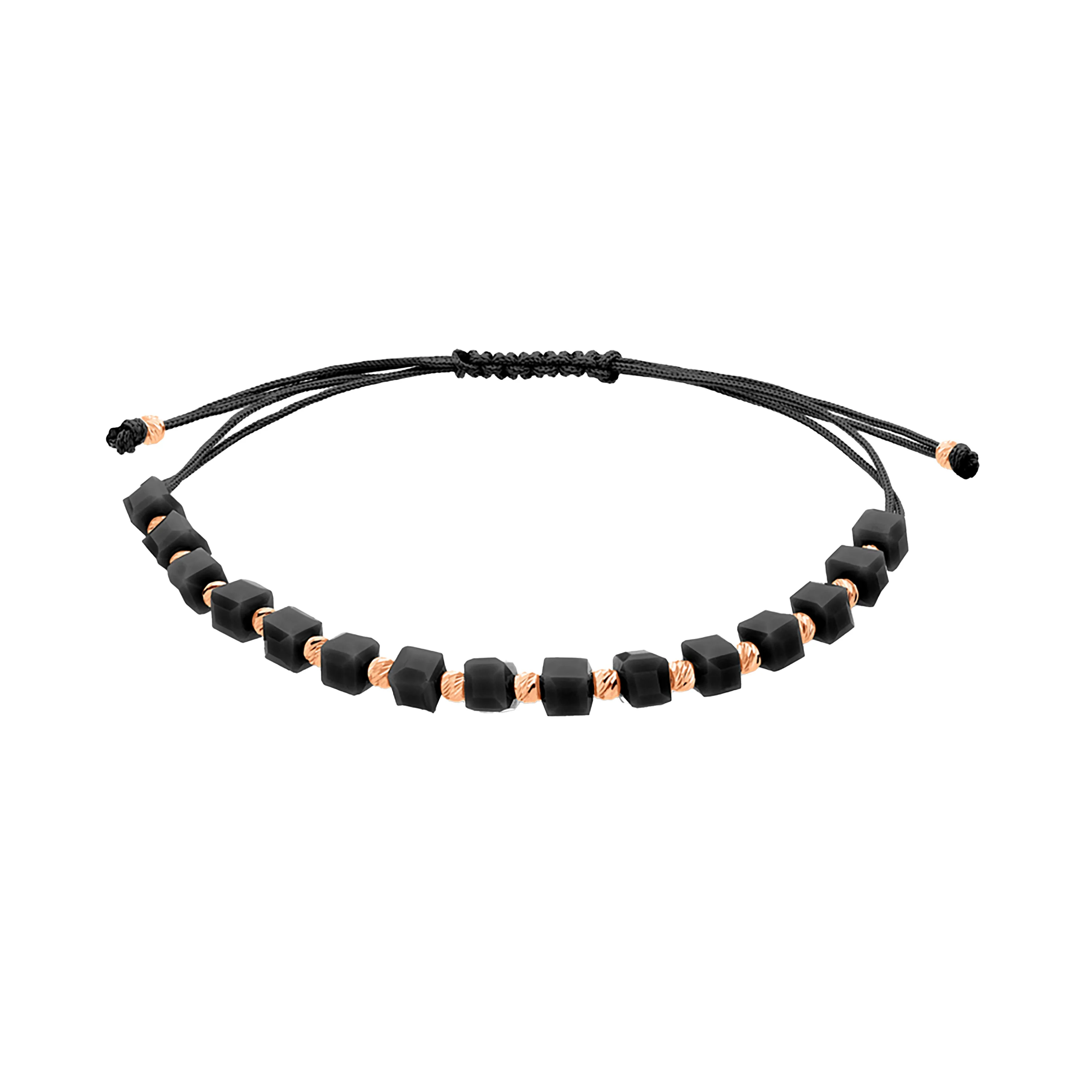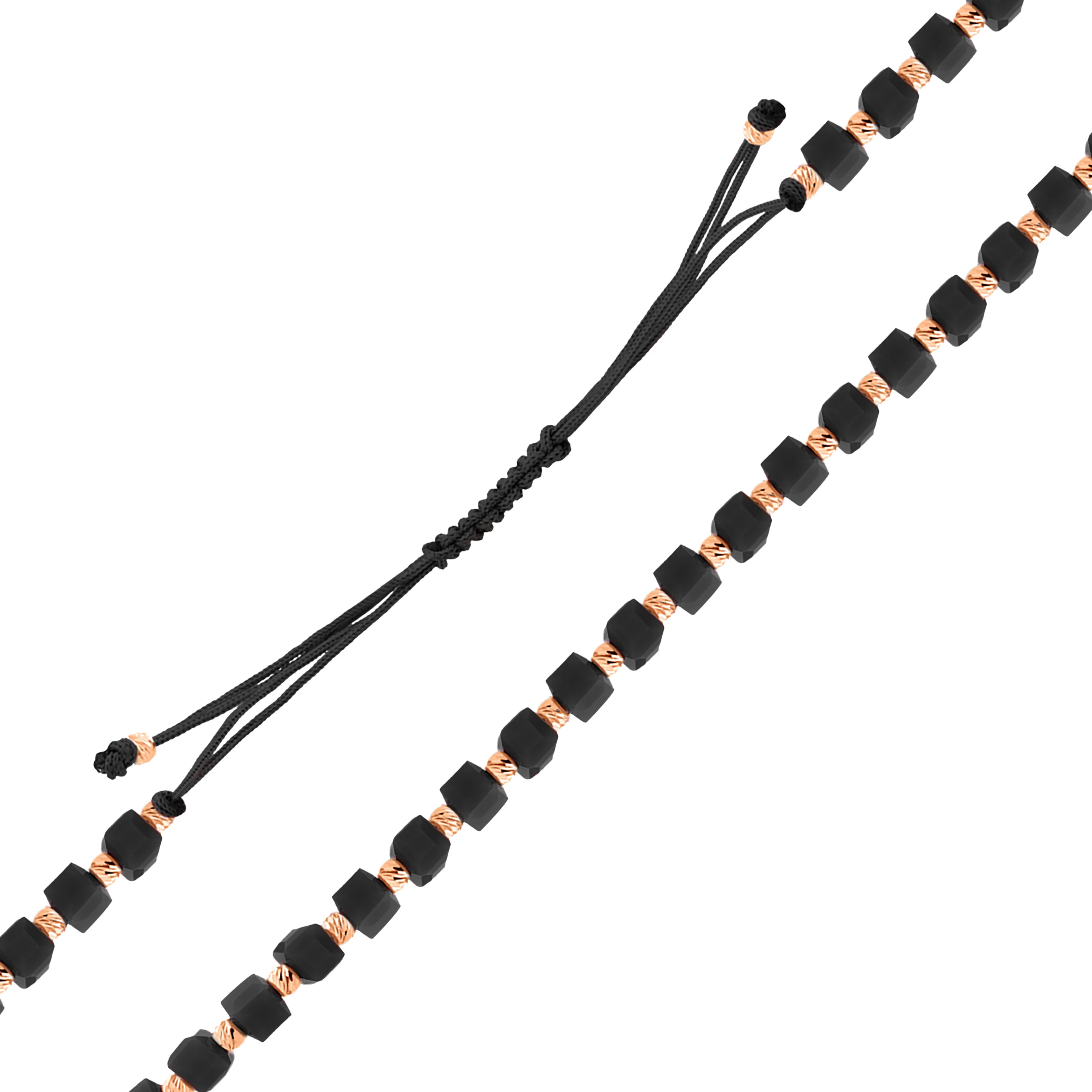 Шовковий браслет на нитці з оніксом зі вставками із червоного золота - 2118626