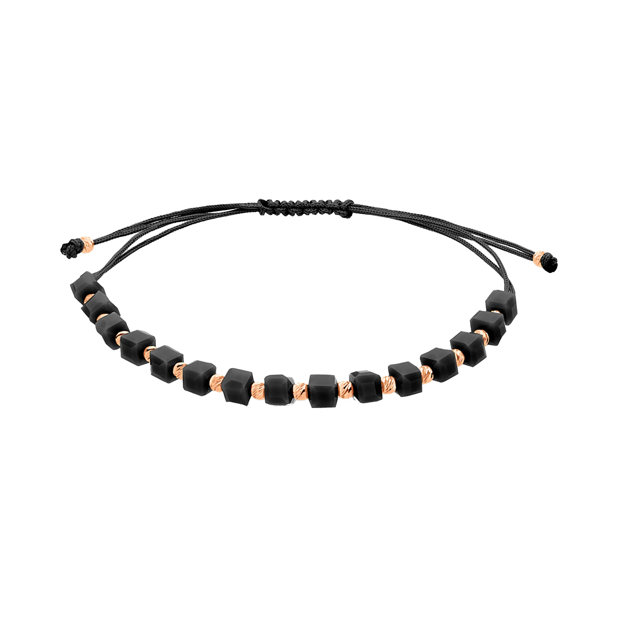 Шовковий браслет на ниті з оніксом і золотими вставками - 2118626