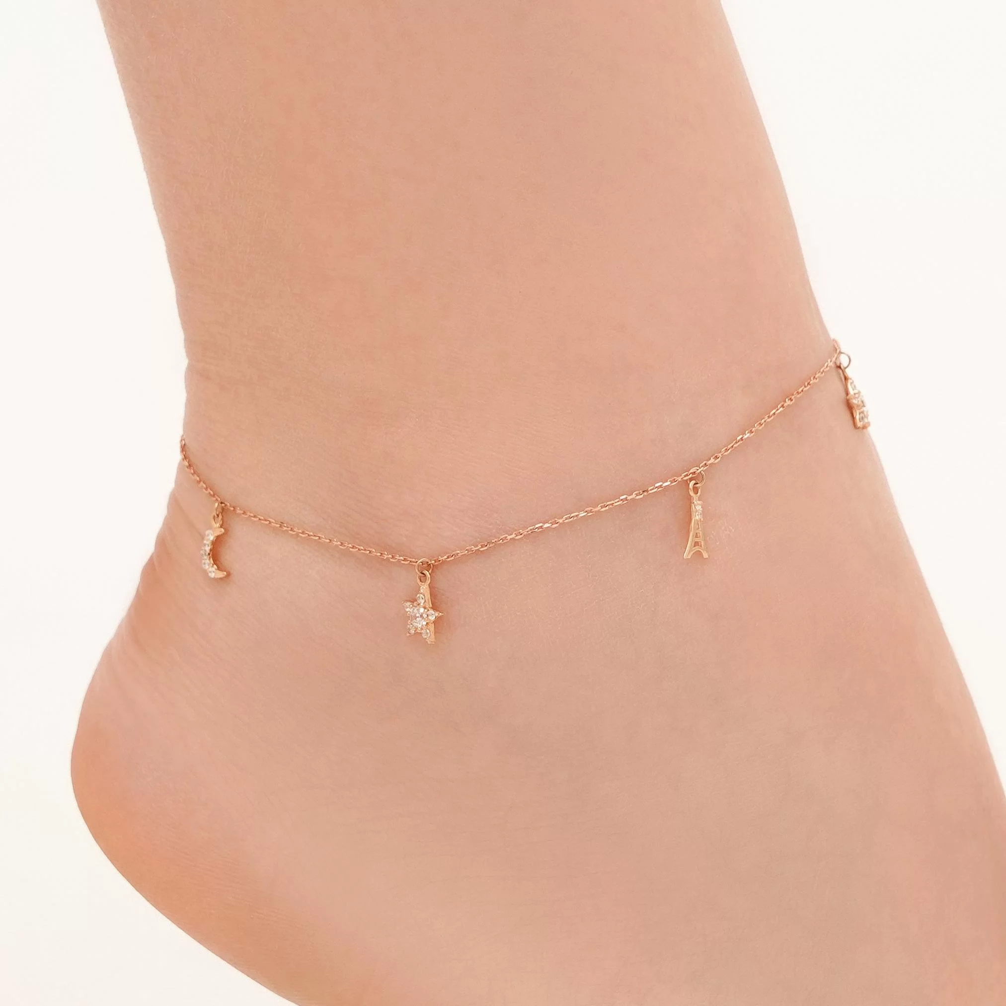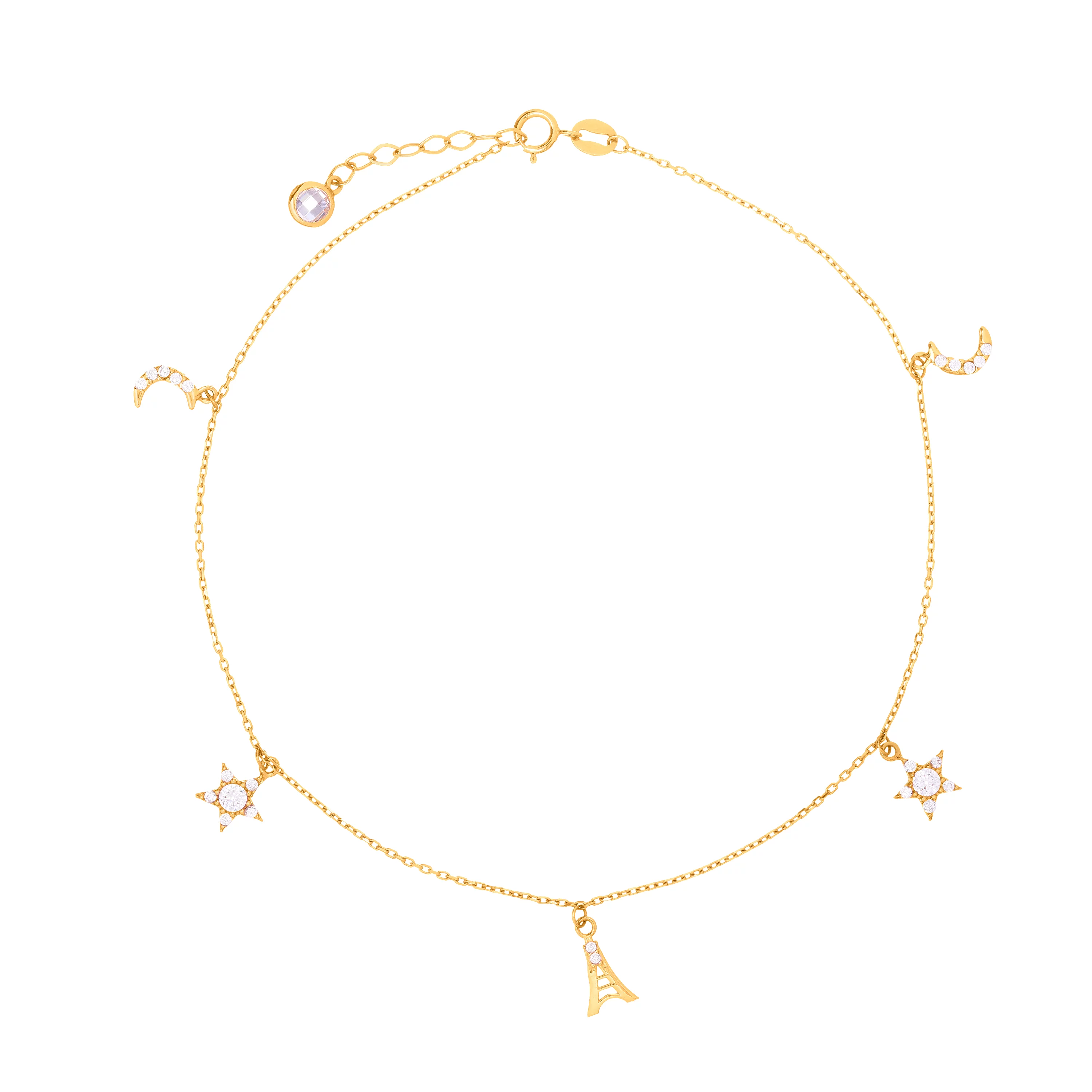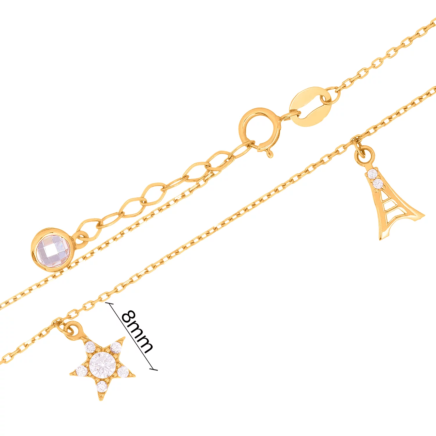 Браслет з червоного золота з підвісками з фіанітом плетіння якір - 1426129