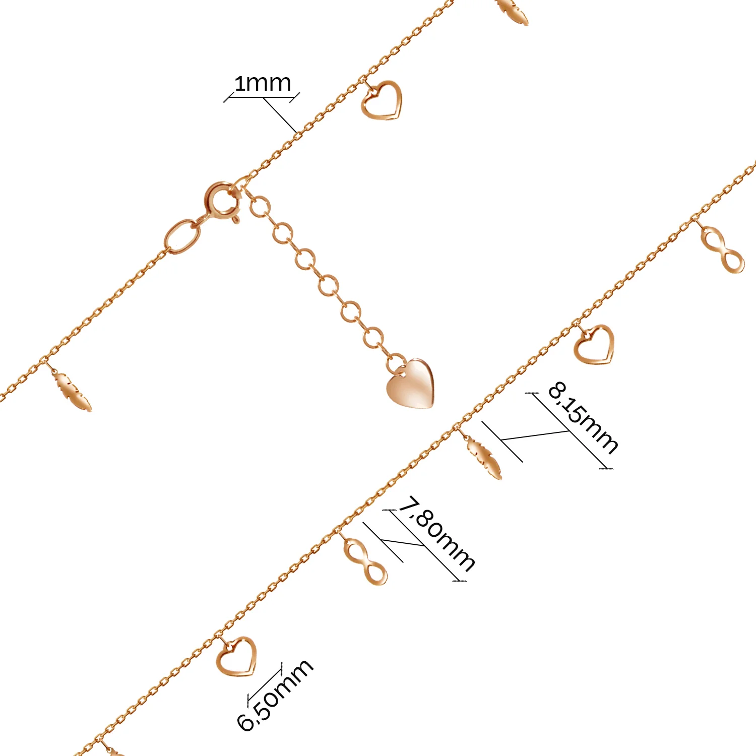 Браслет з червоного золота з підвіскою "Серце" якірного плетіння - 1649611