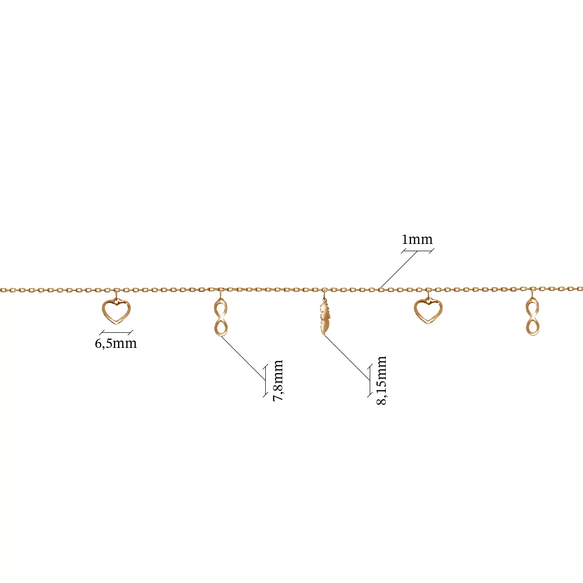 Браслет з червоного золота з підвіскою "Сердечко" плетіння якір - 1552254