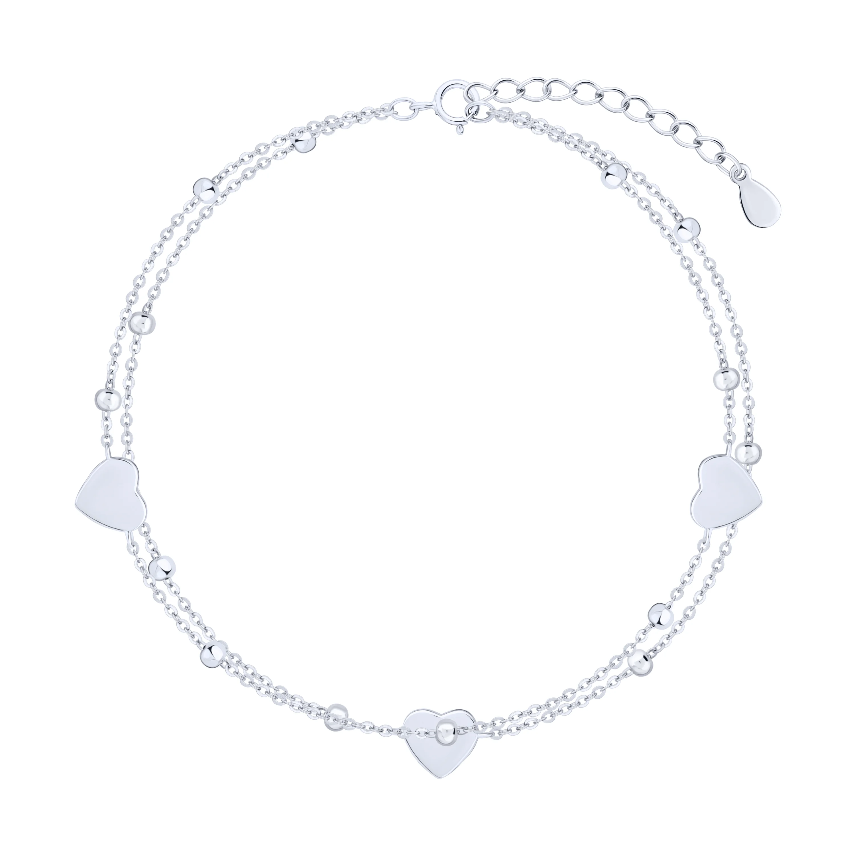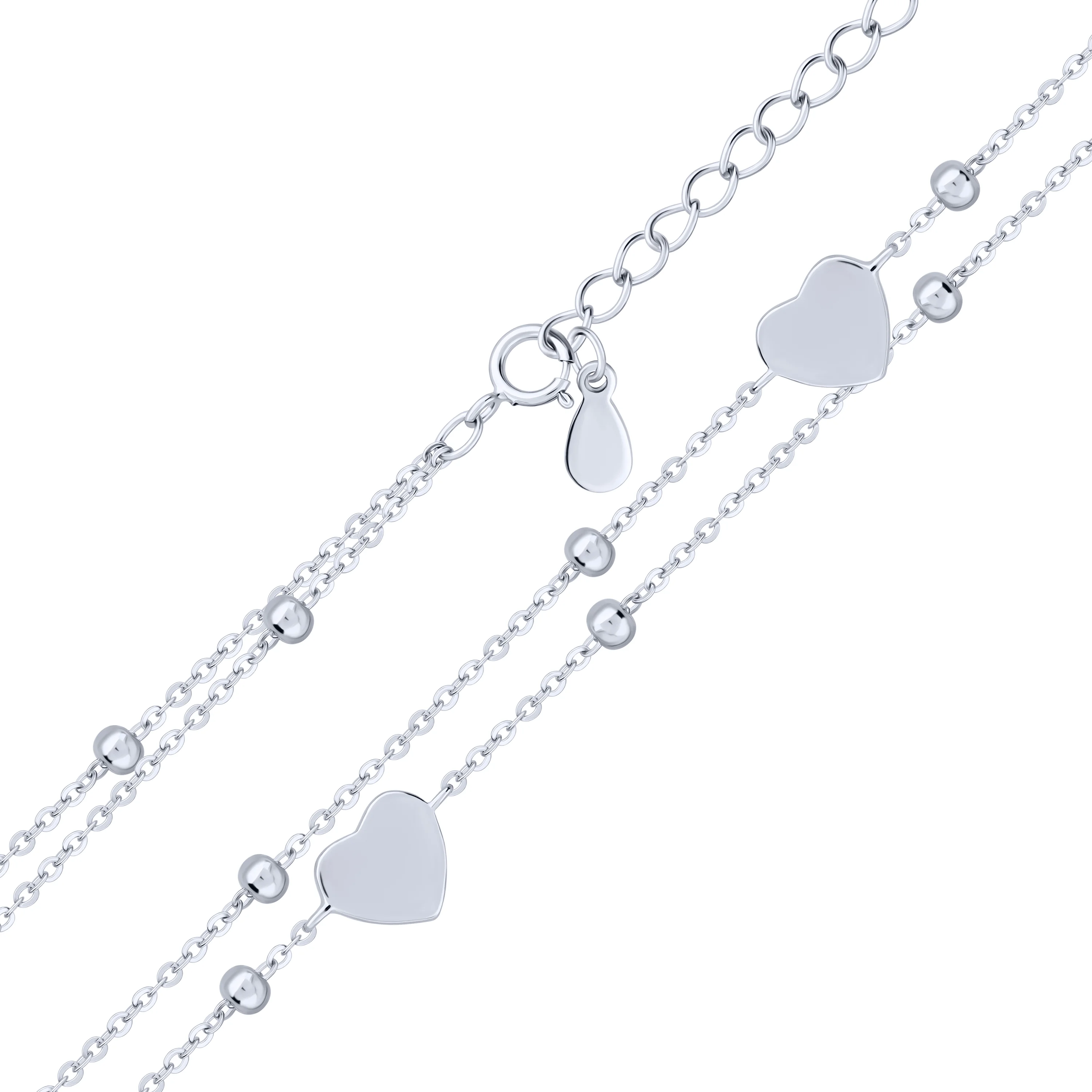 Браслет подвійний зі срібла "Серця і кульки" у якірному плетінні - 2130999