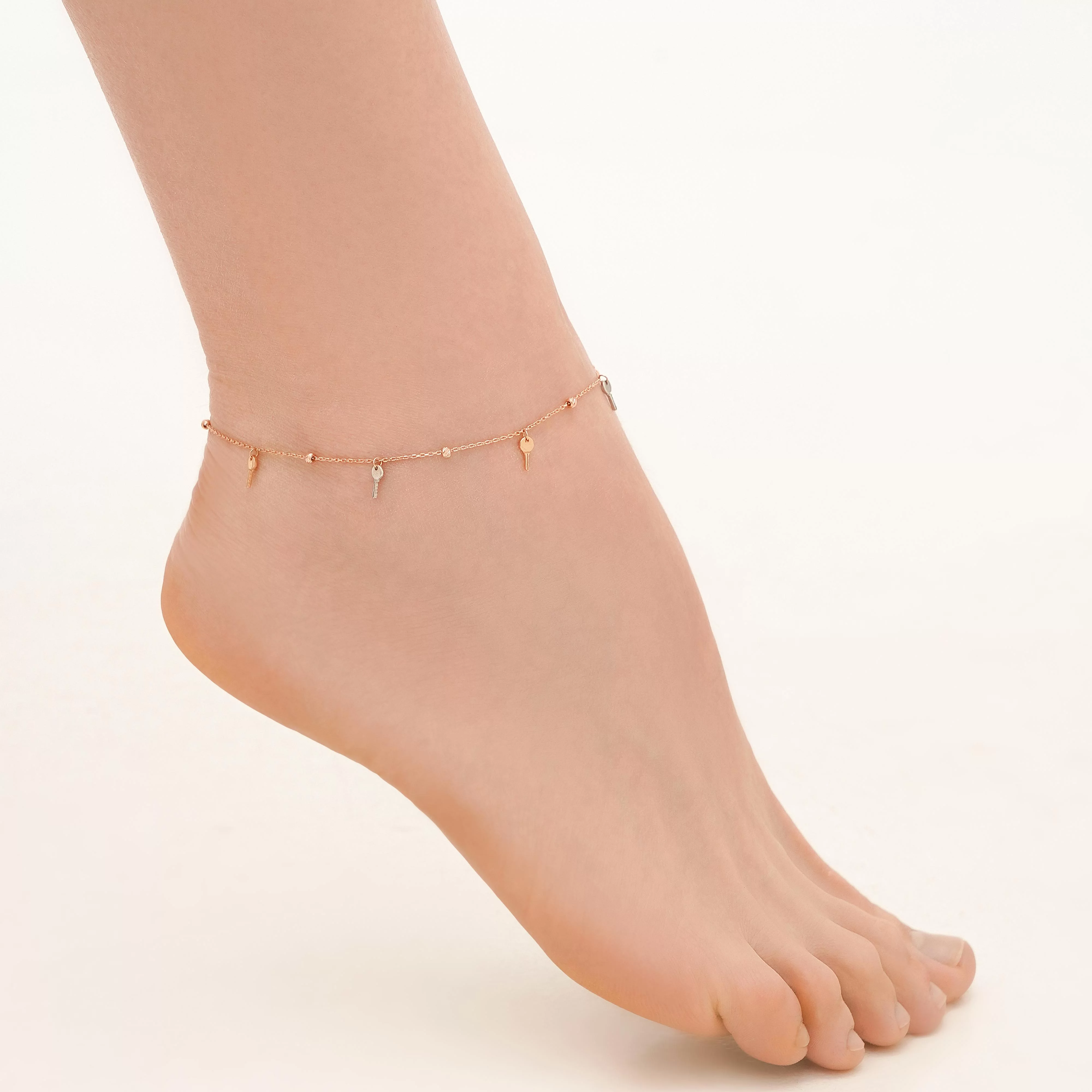 Браслет з червоного золота "Ключик" з розсипом фіанітів і плетінням якір та шопард - 1858236