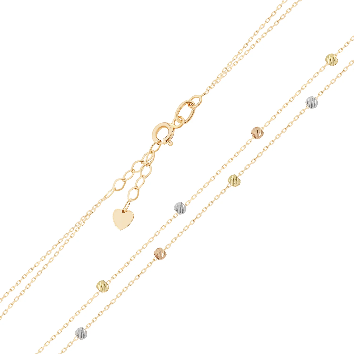 Браслет в комбінованому золоті з кульками плетіння якір - 1578142