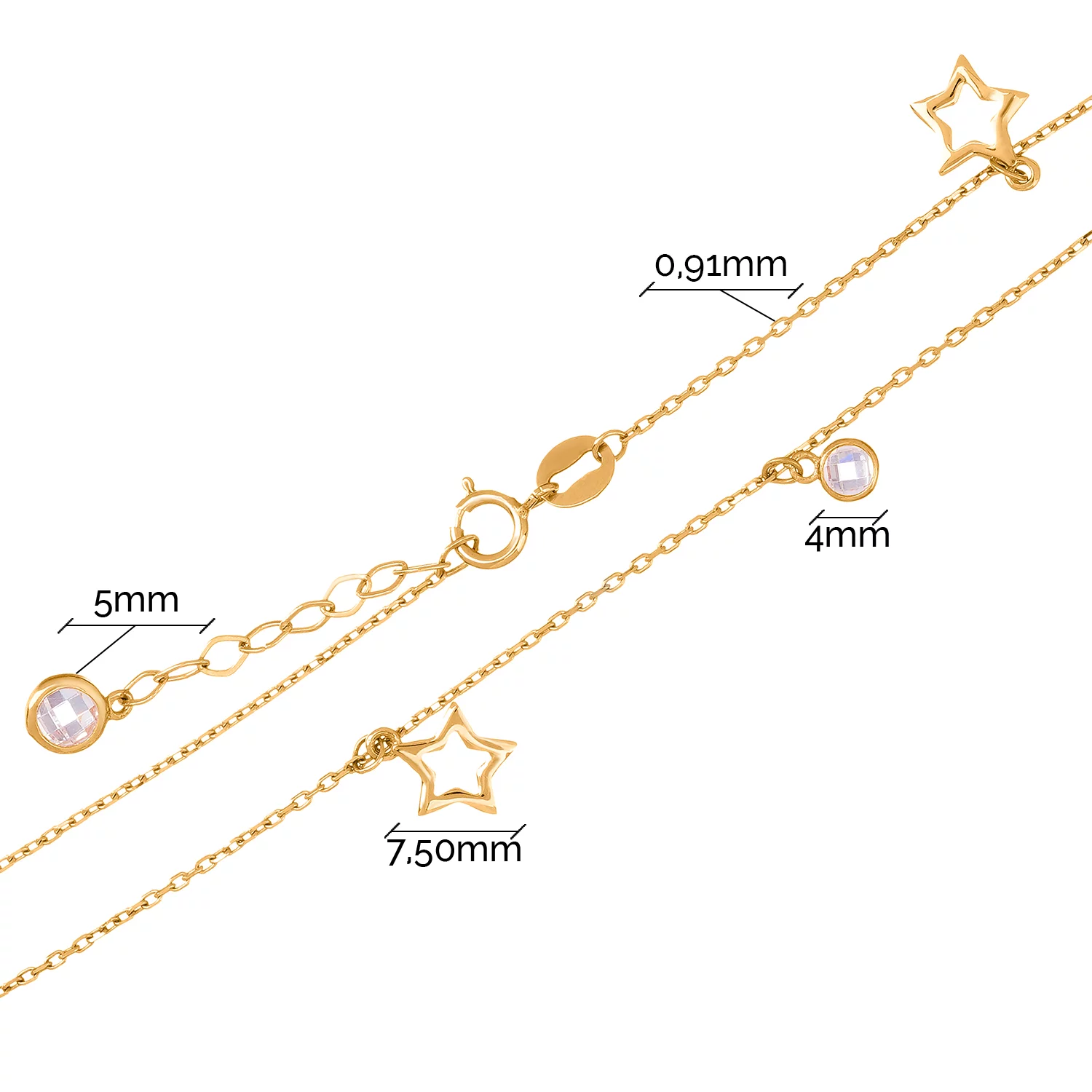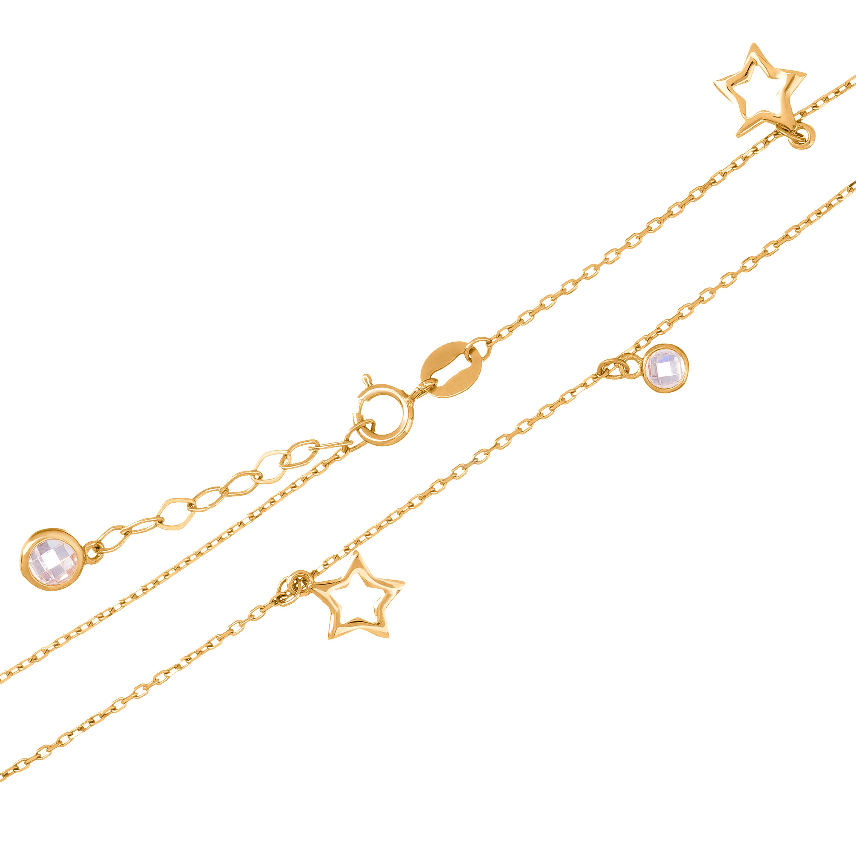 Браслет з лимонного золота з фіанітом і підвісами плетіння шопард - 960813