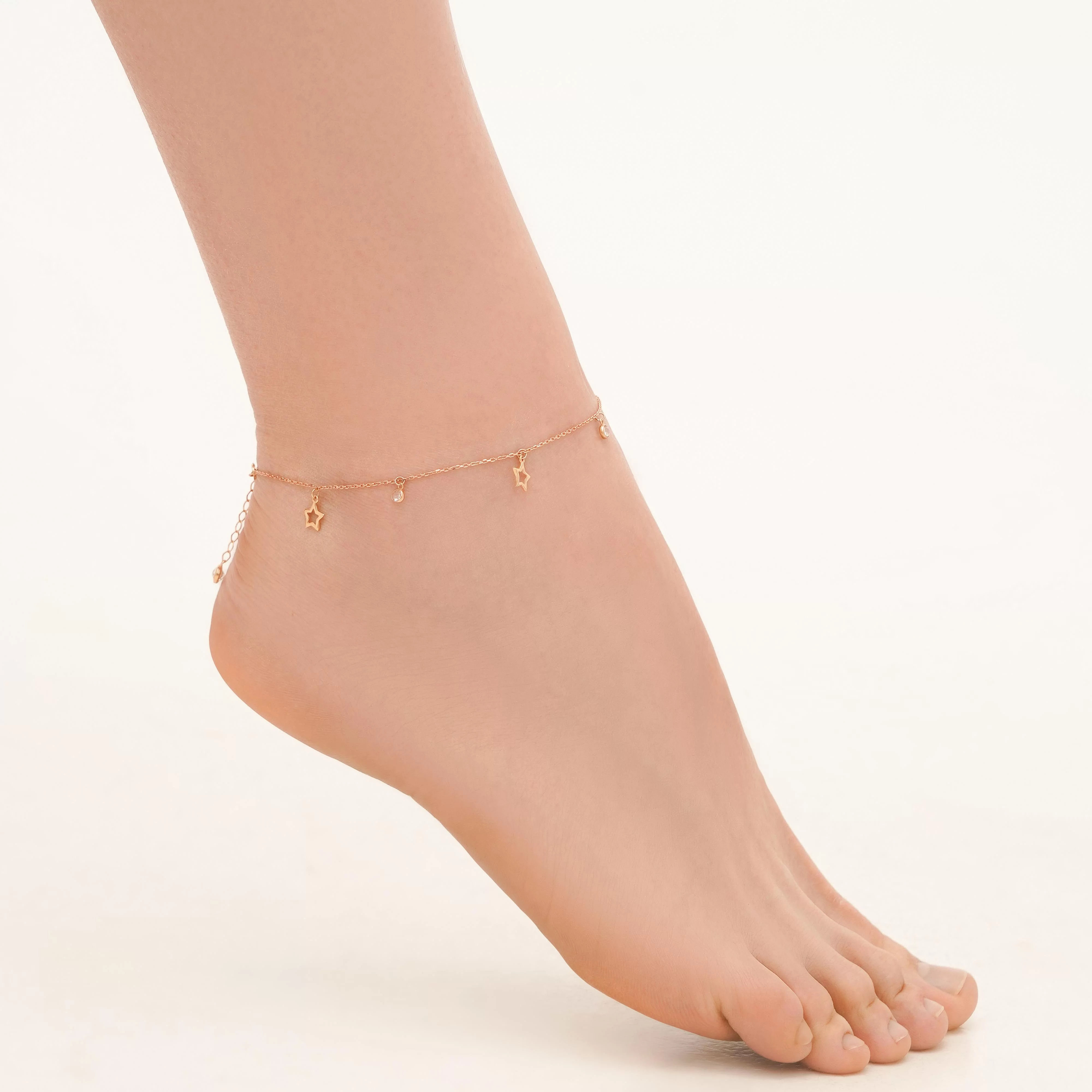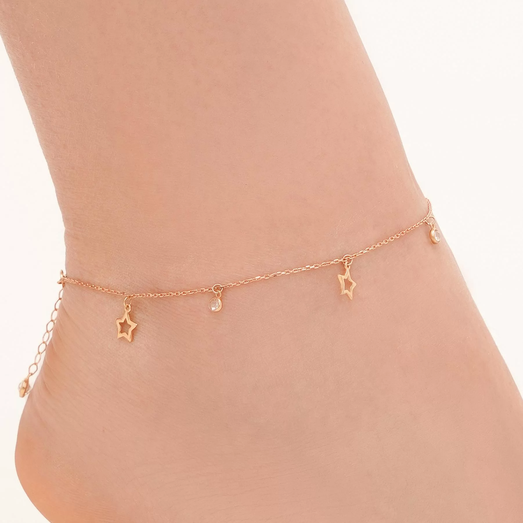 Браслет з червоного золота з підвісками з фіанітом плетіння якір - 1426129