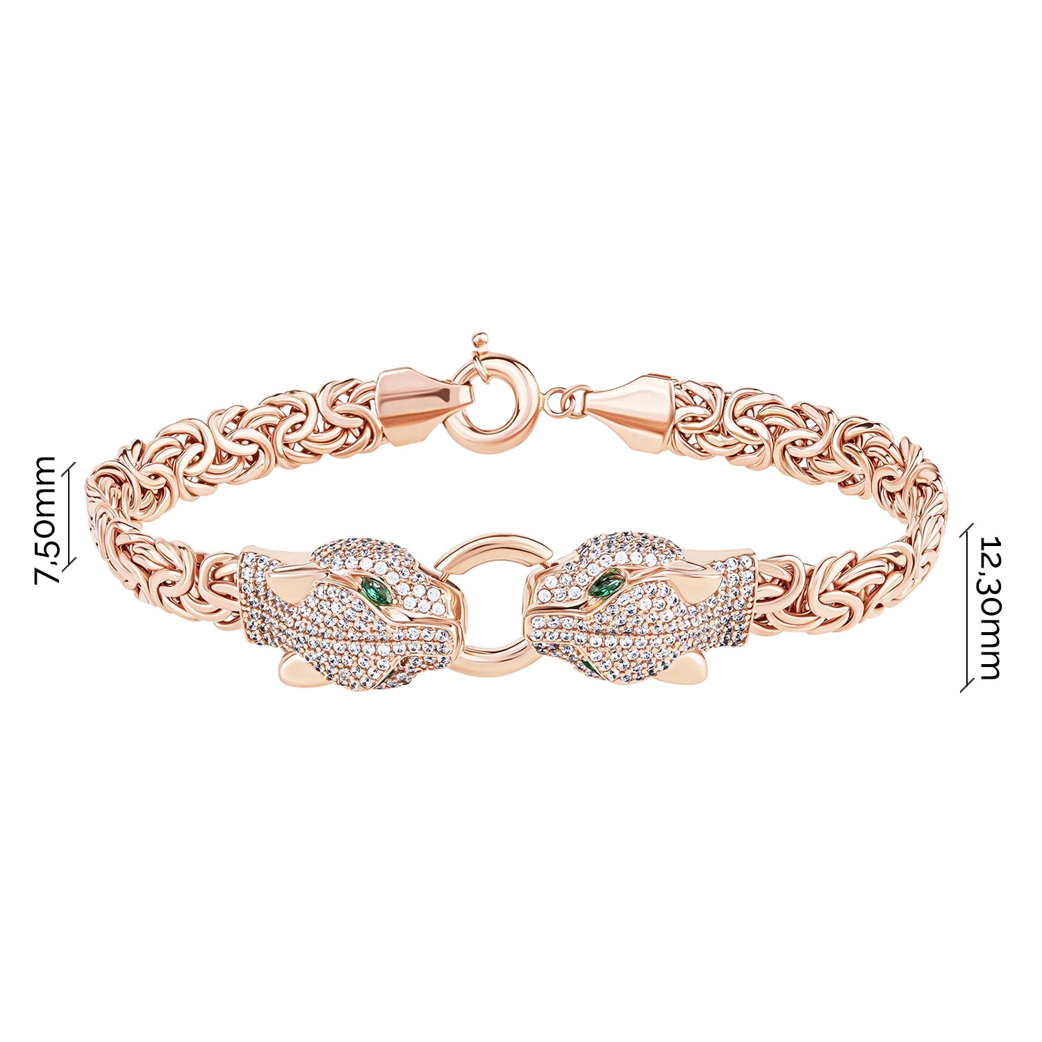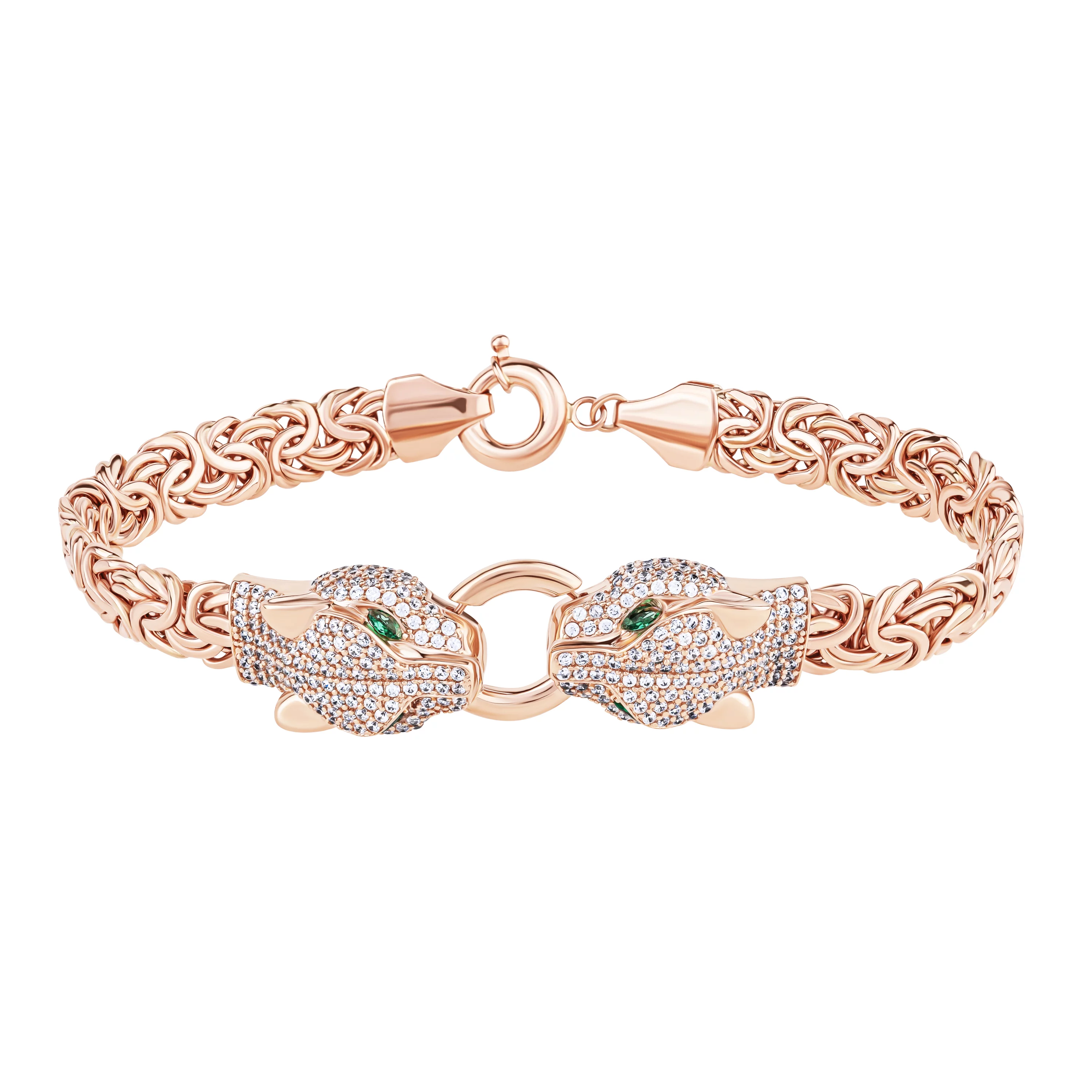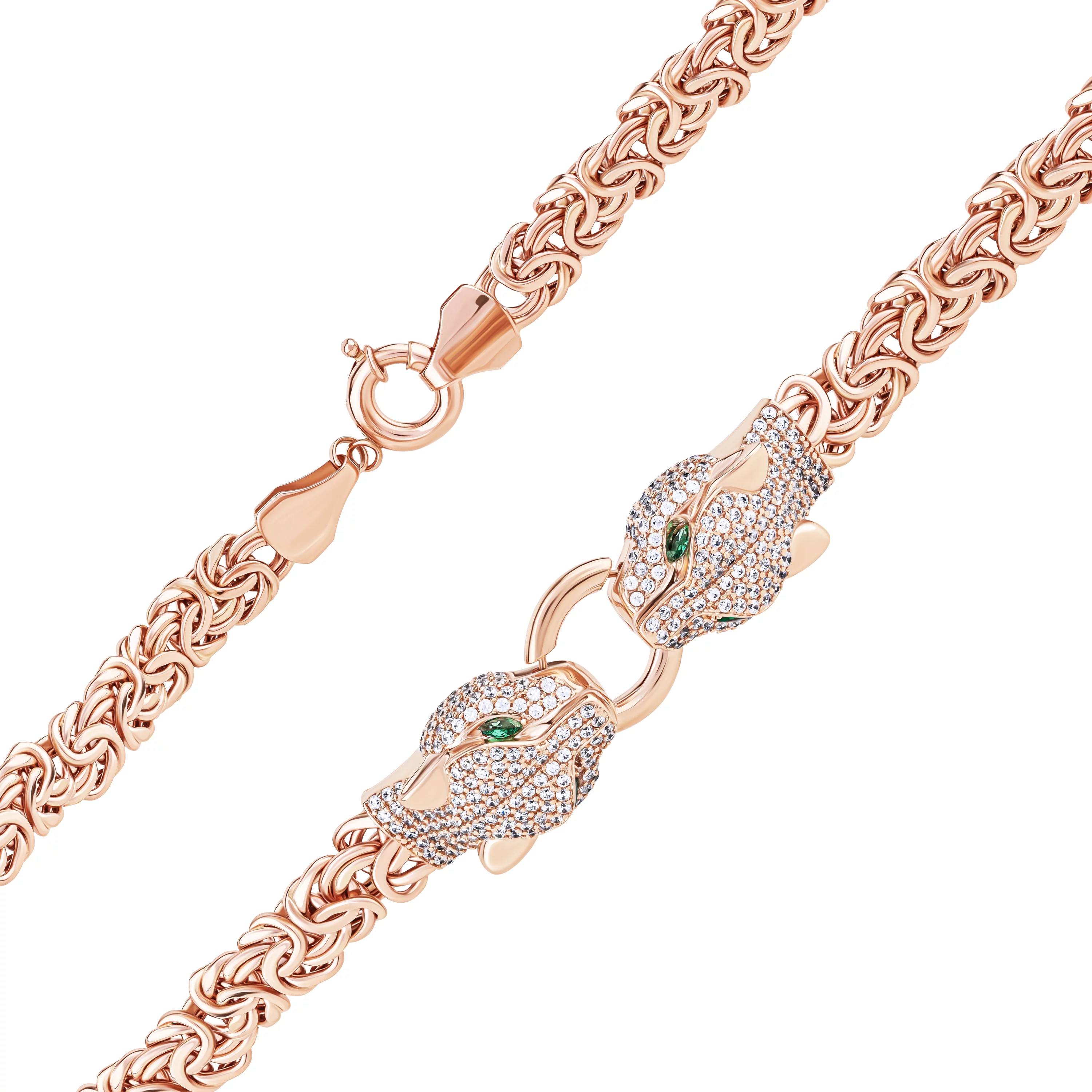 Браслет "Пантера" у червоному золоті з фіанітами плетіння візантійське - 1847369