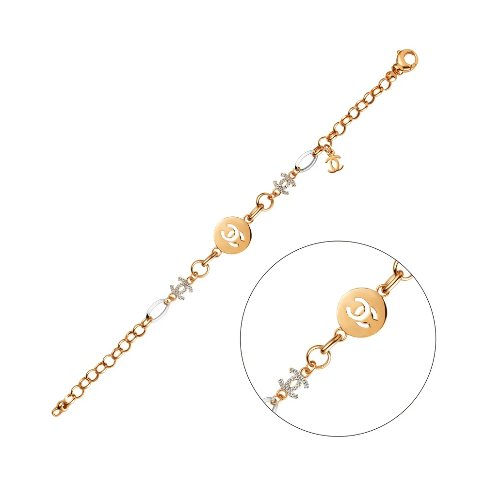 Браслет в комбінованому плетінні з червоного золота "Підкова" з фіанітами - 1657777
