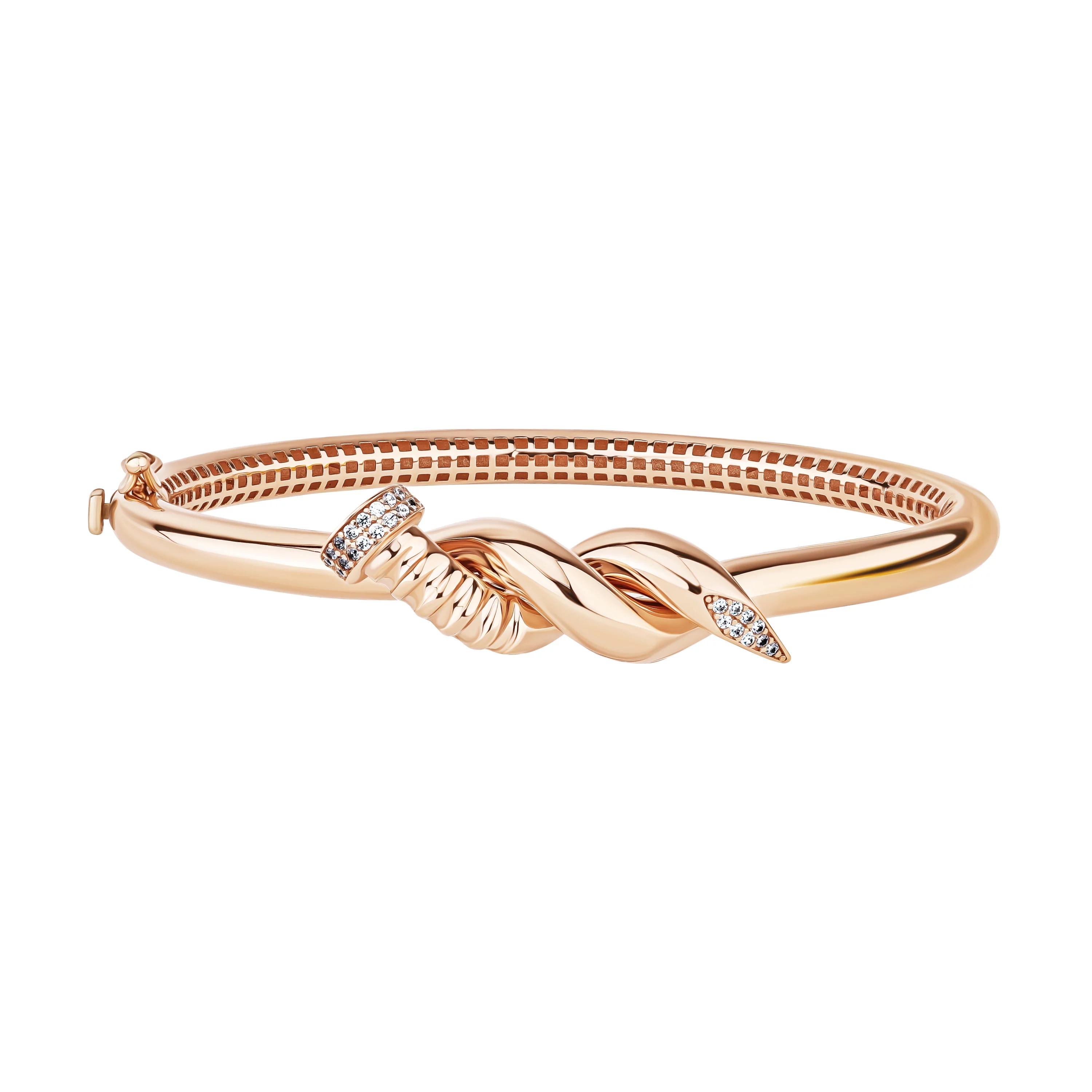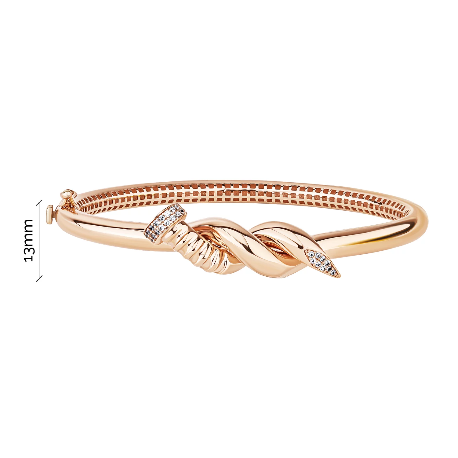 Жорсткий незамкнений браслет "Змія" з червоного золота з фіанітами - 1747177