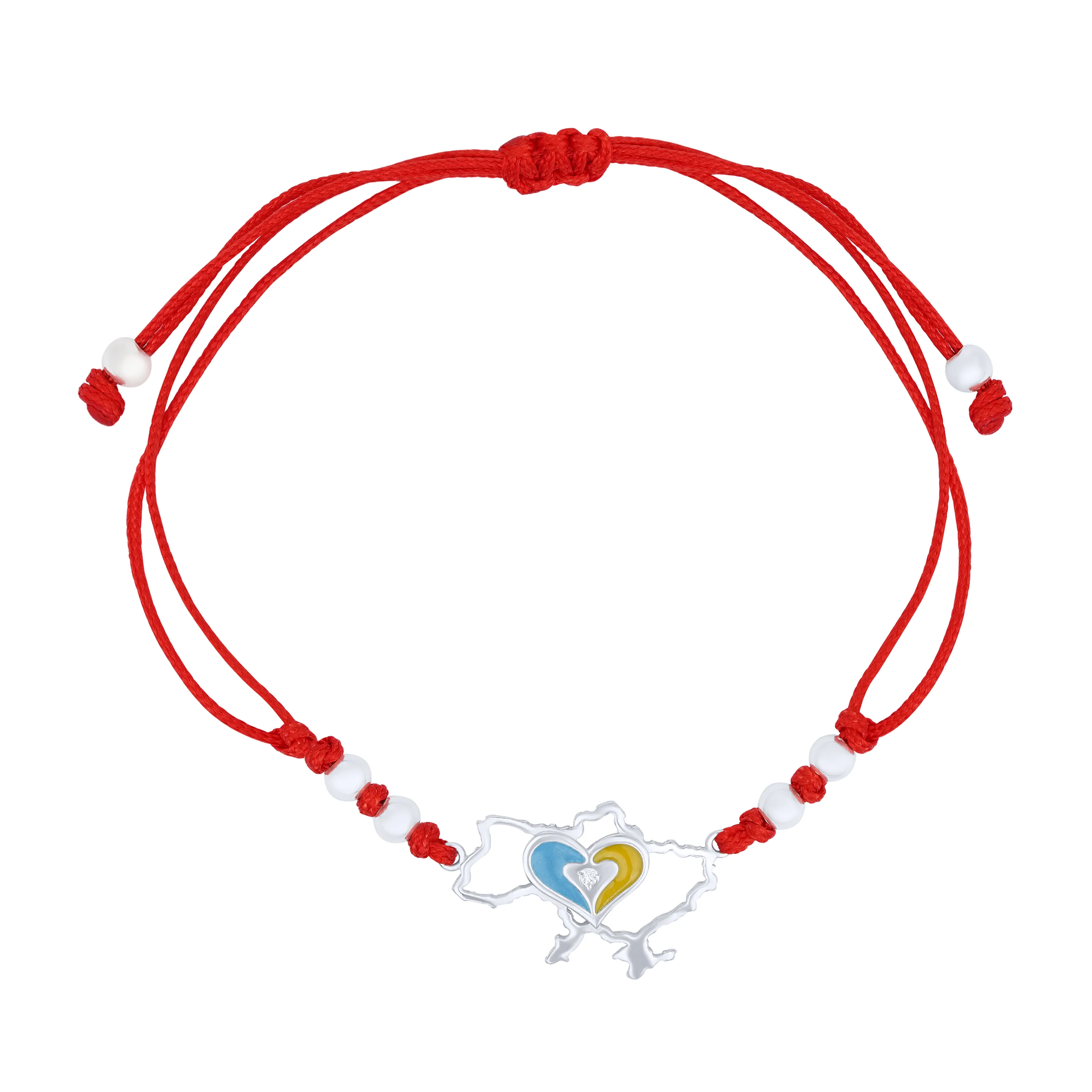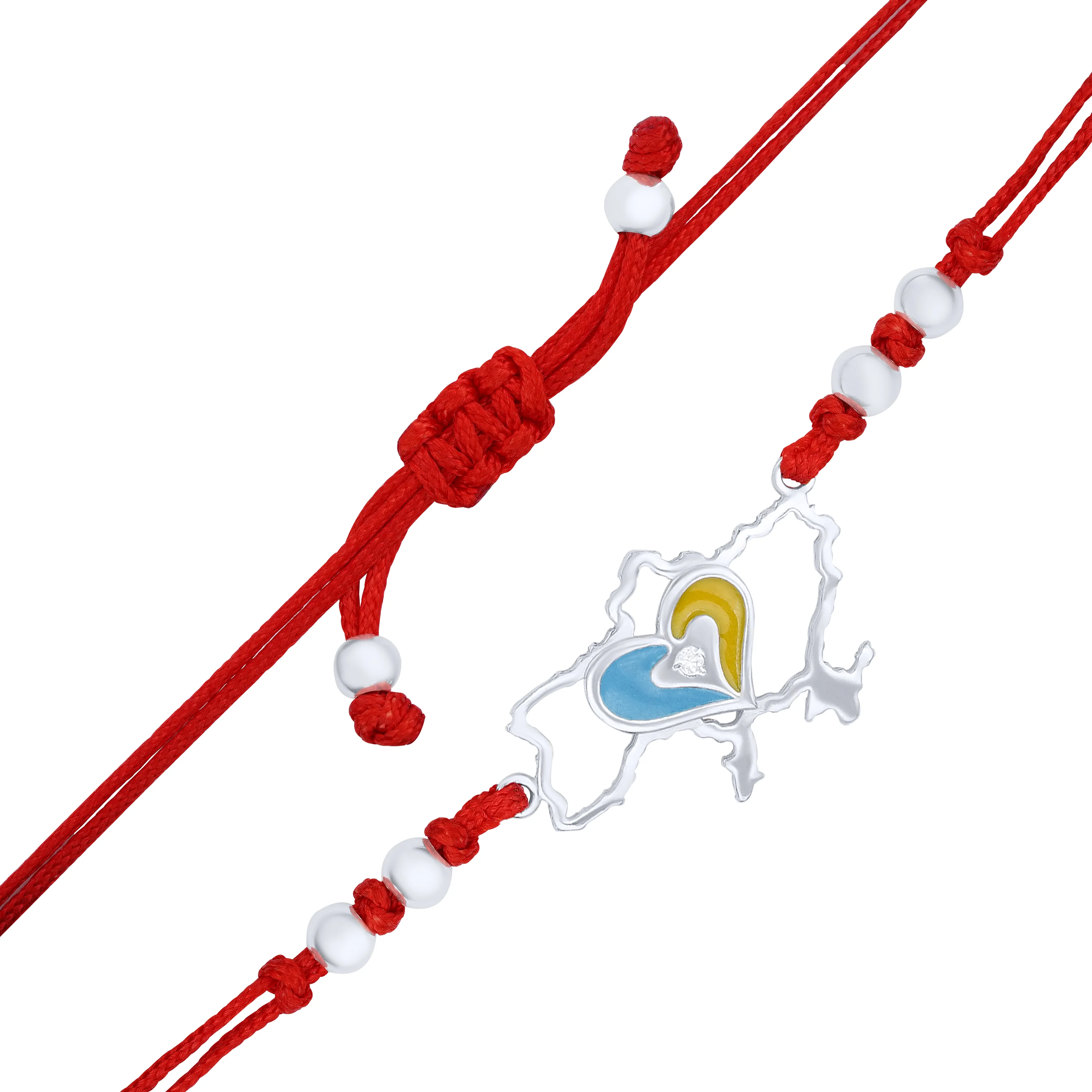 Шовковий браслет зі вставкою зі срібла "Янгол з серцем" з фіанітами - 1822264