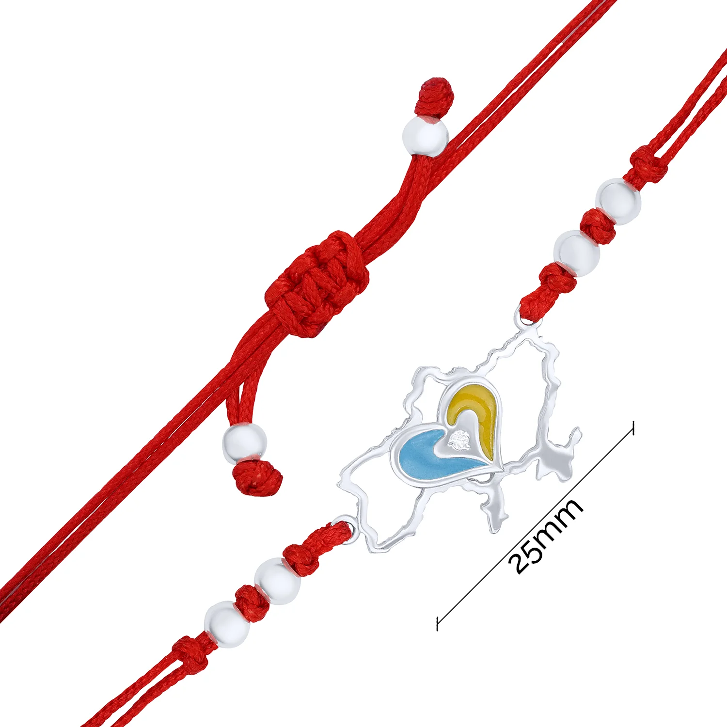 Браслет із синьо-жовтого шовку з вставкою зі срібла "Українське Серце" з фіанітами - 1549772