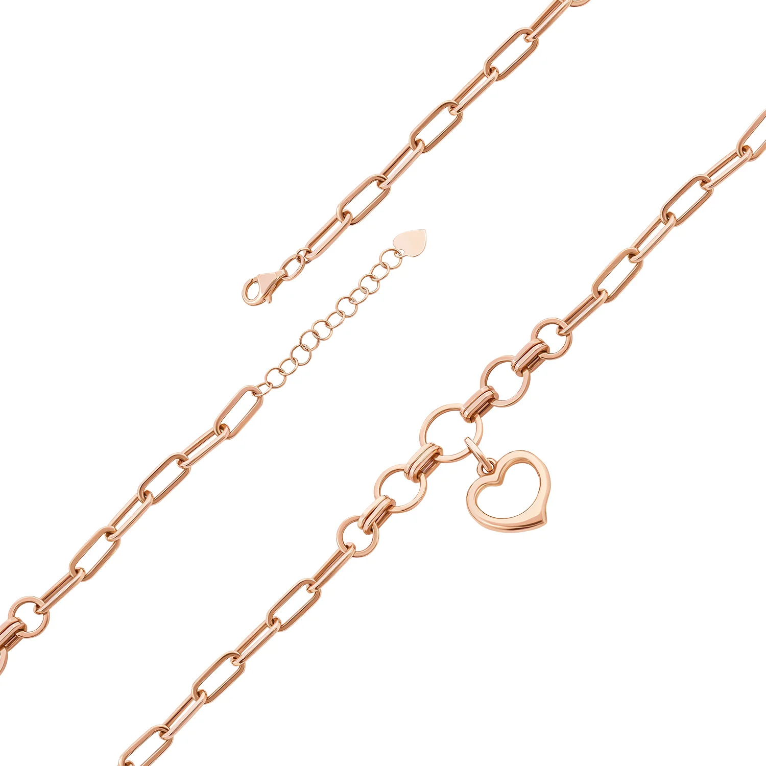 Елегантний браслет з підвісом "Серце" у червоному золоті з плетінням якір та шопард - 1952588
