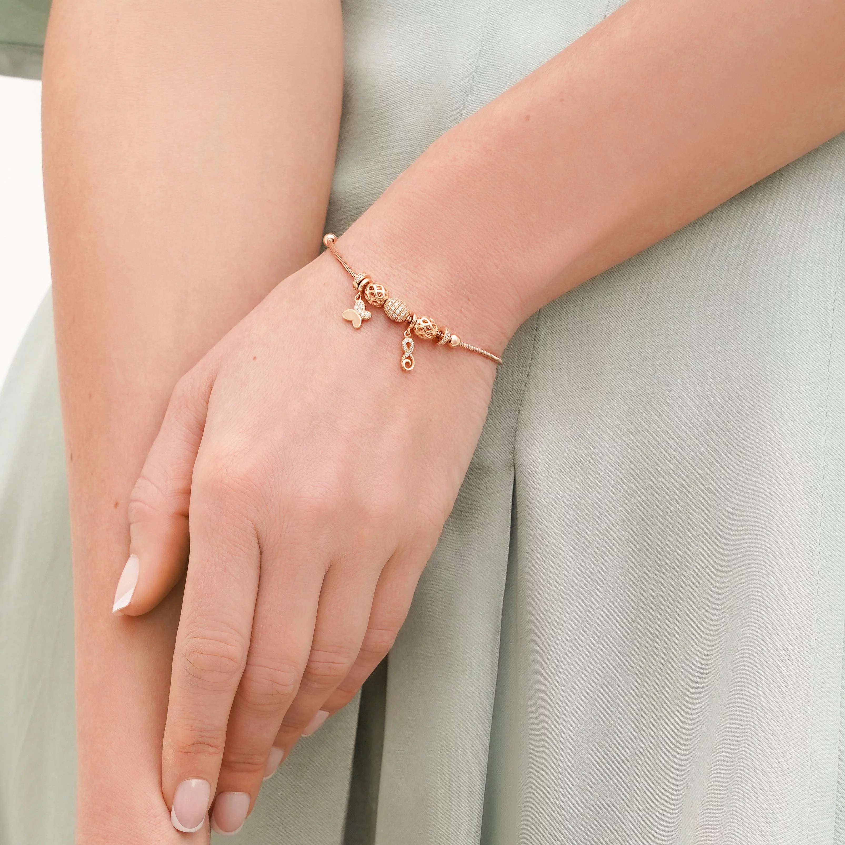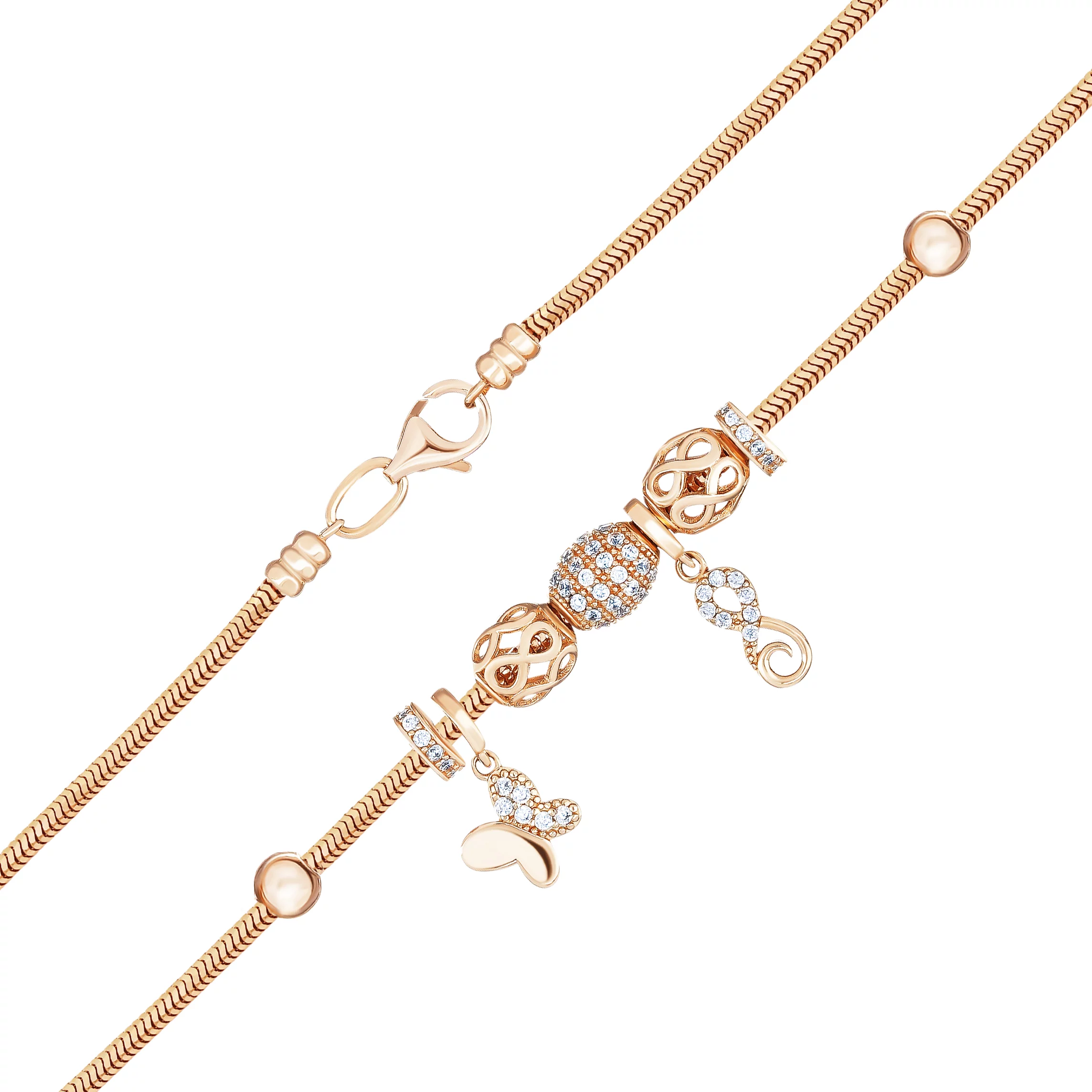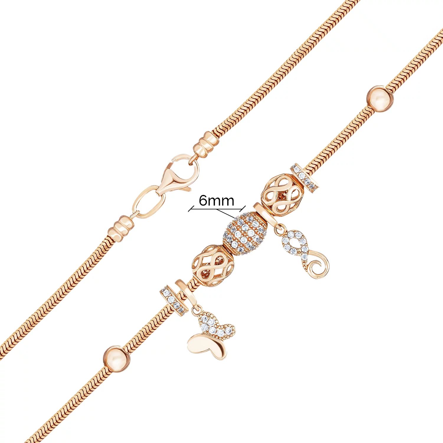 Браслет у червоному золоті з підвісами та фіанітами плетіння снейк - 1615847