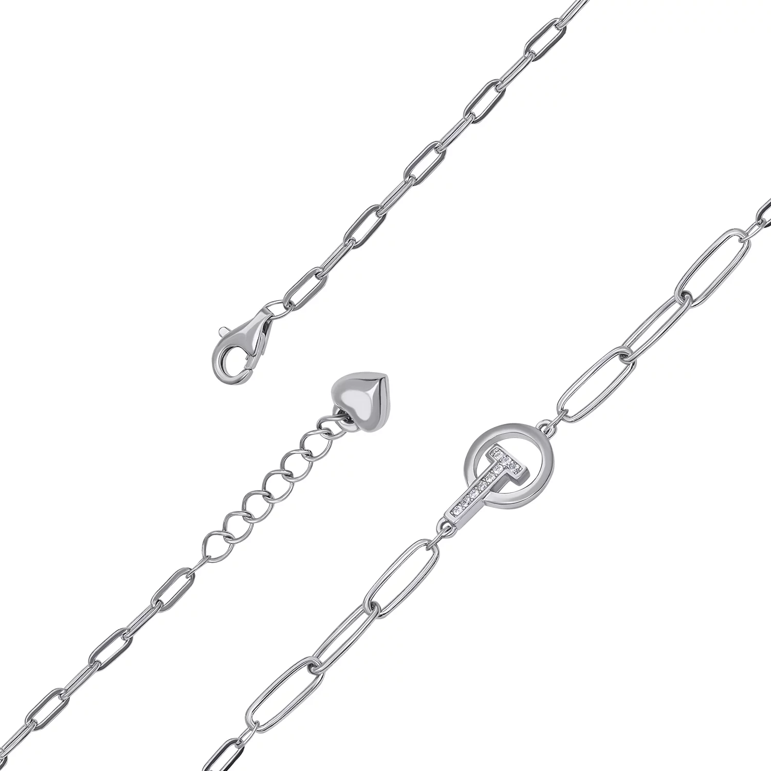 Браслет "Конюшина" срібний з емаллю та фіанітами якірне плетіння - 1618366