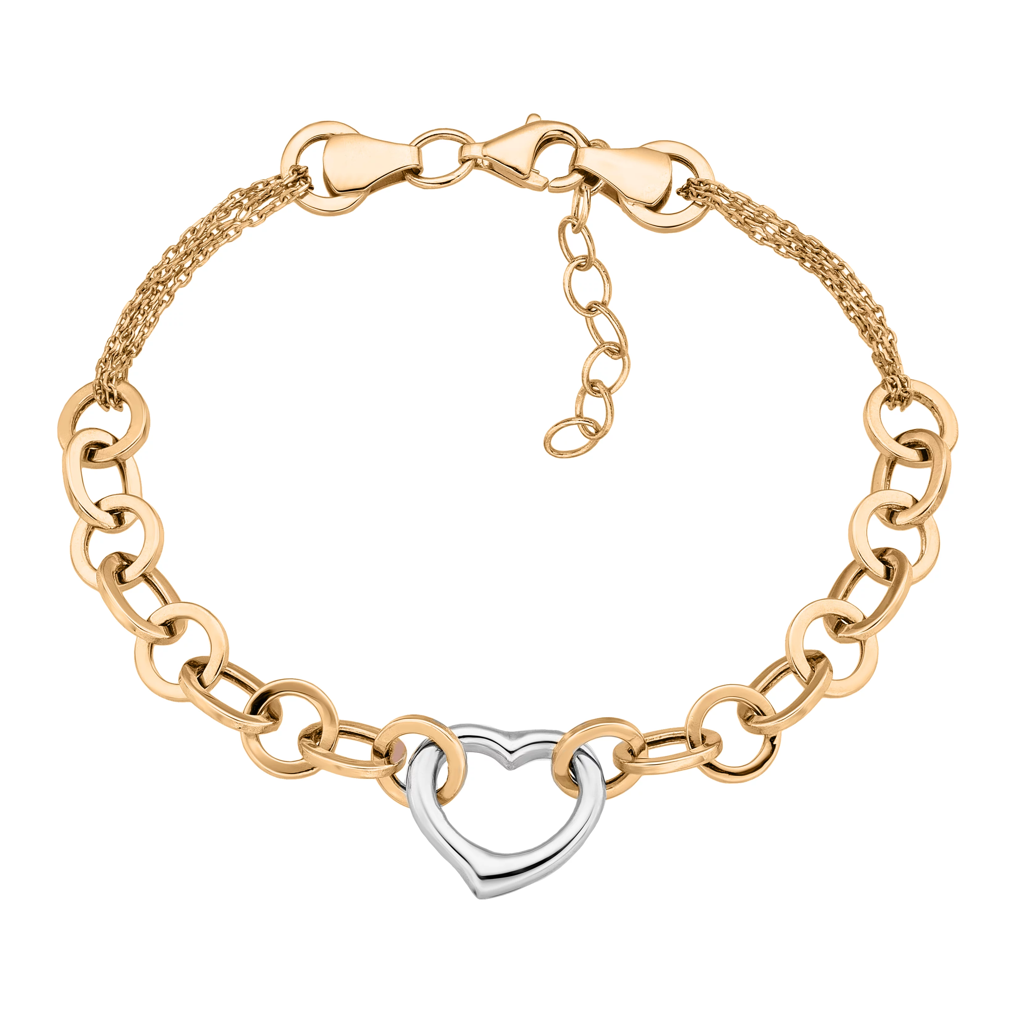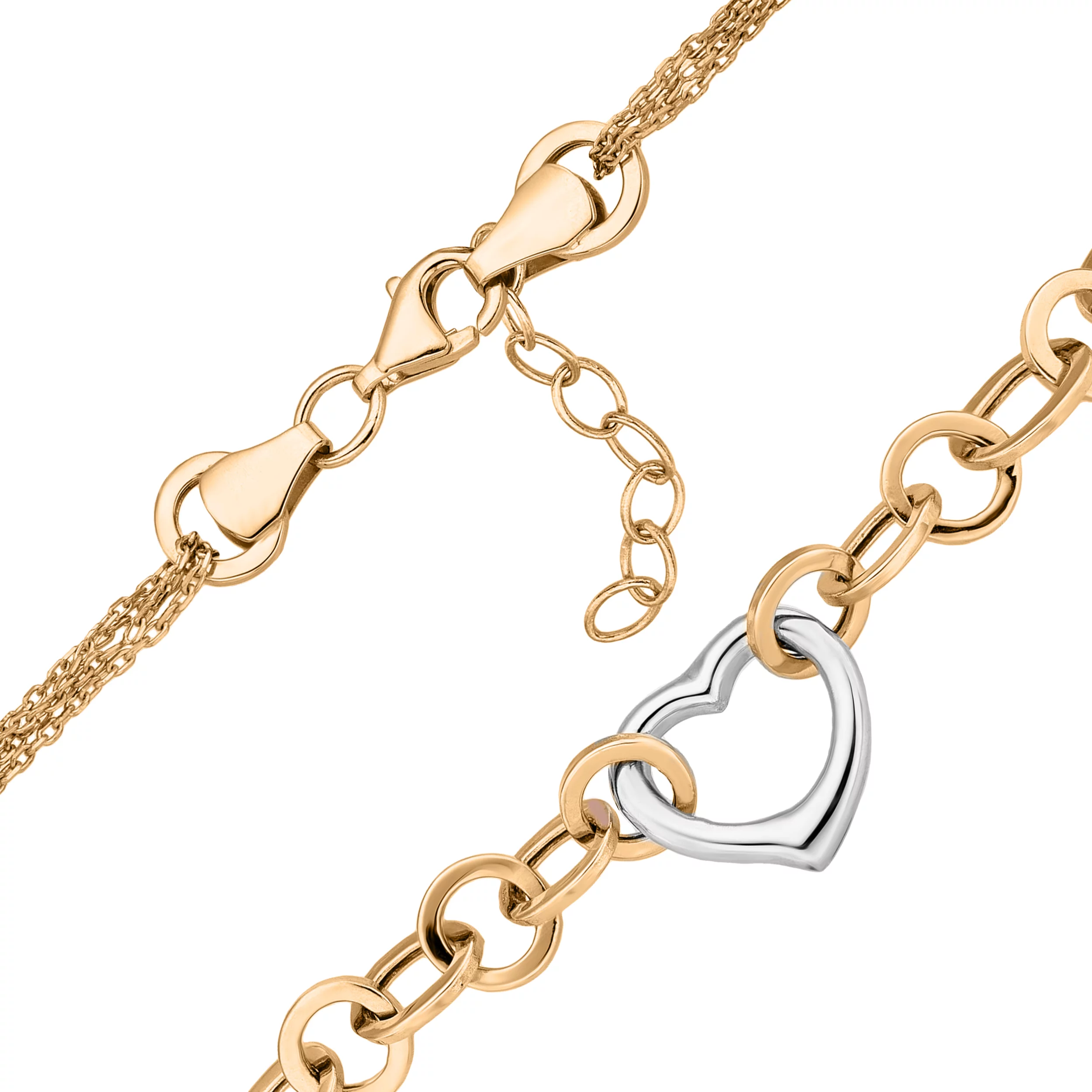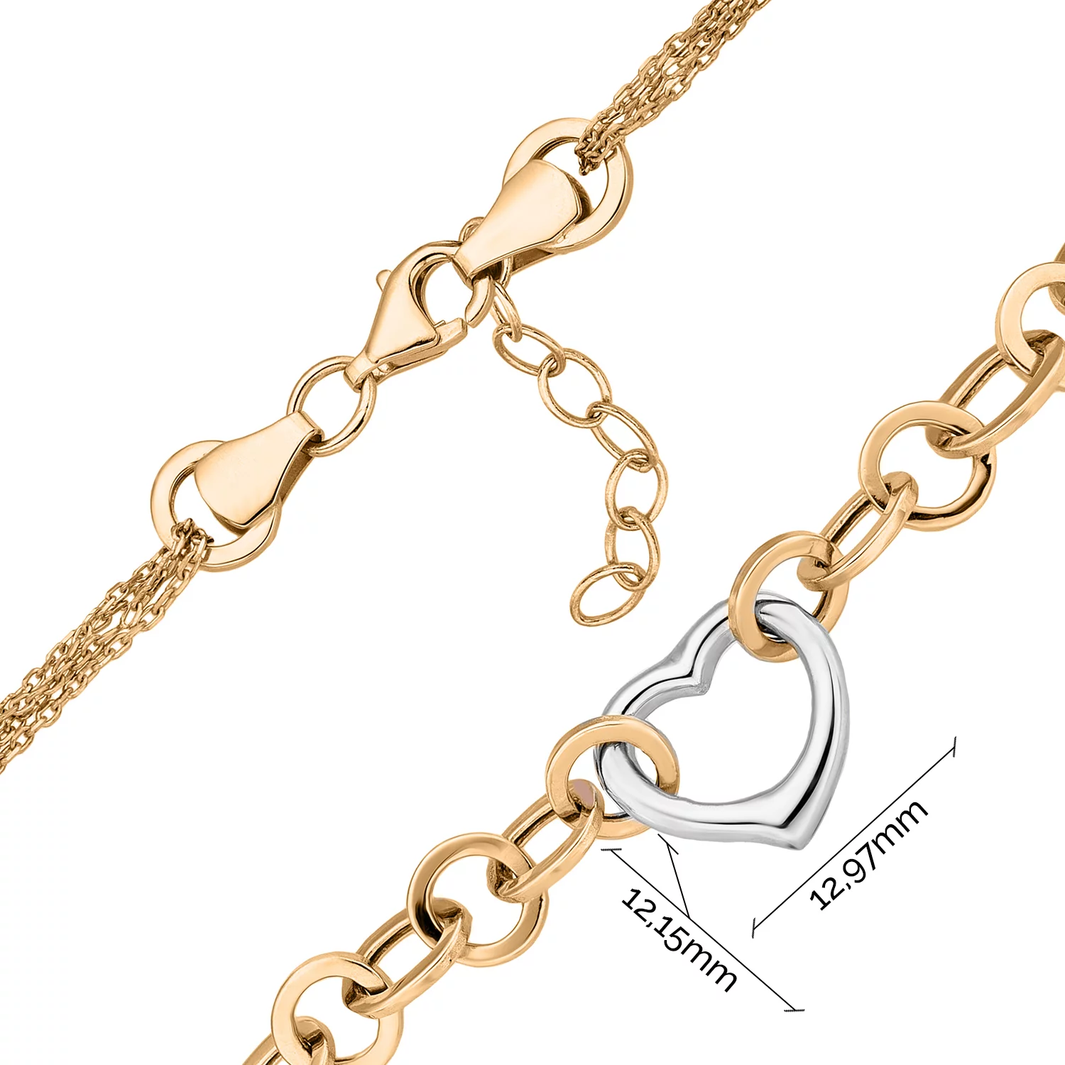 Браслет з комбінованого золота шопард та якірне плетіння "Серце" - 1649527