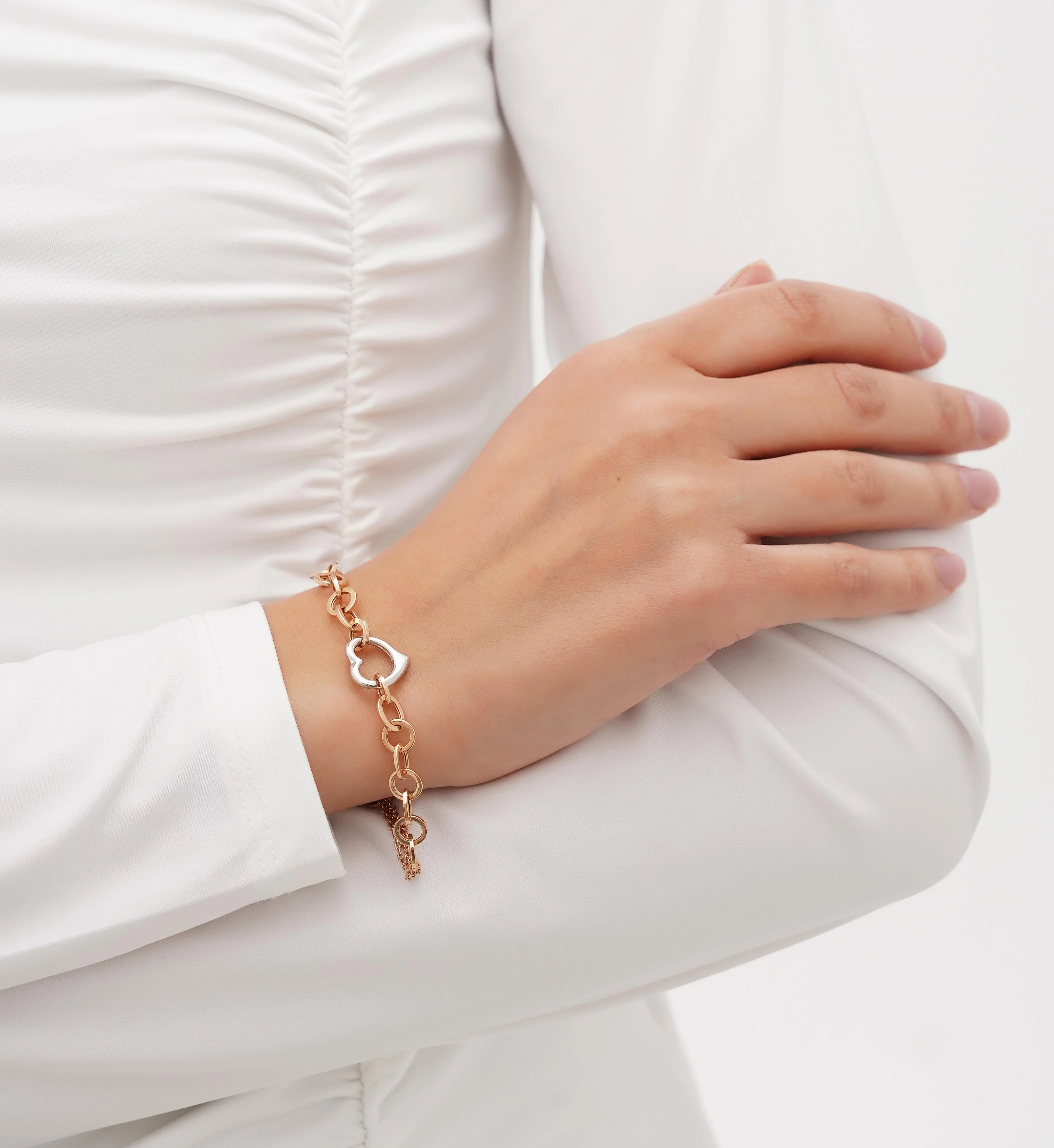 Браслет з комбінованого золота з кульками "Серце" плетіння якір - 870330