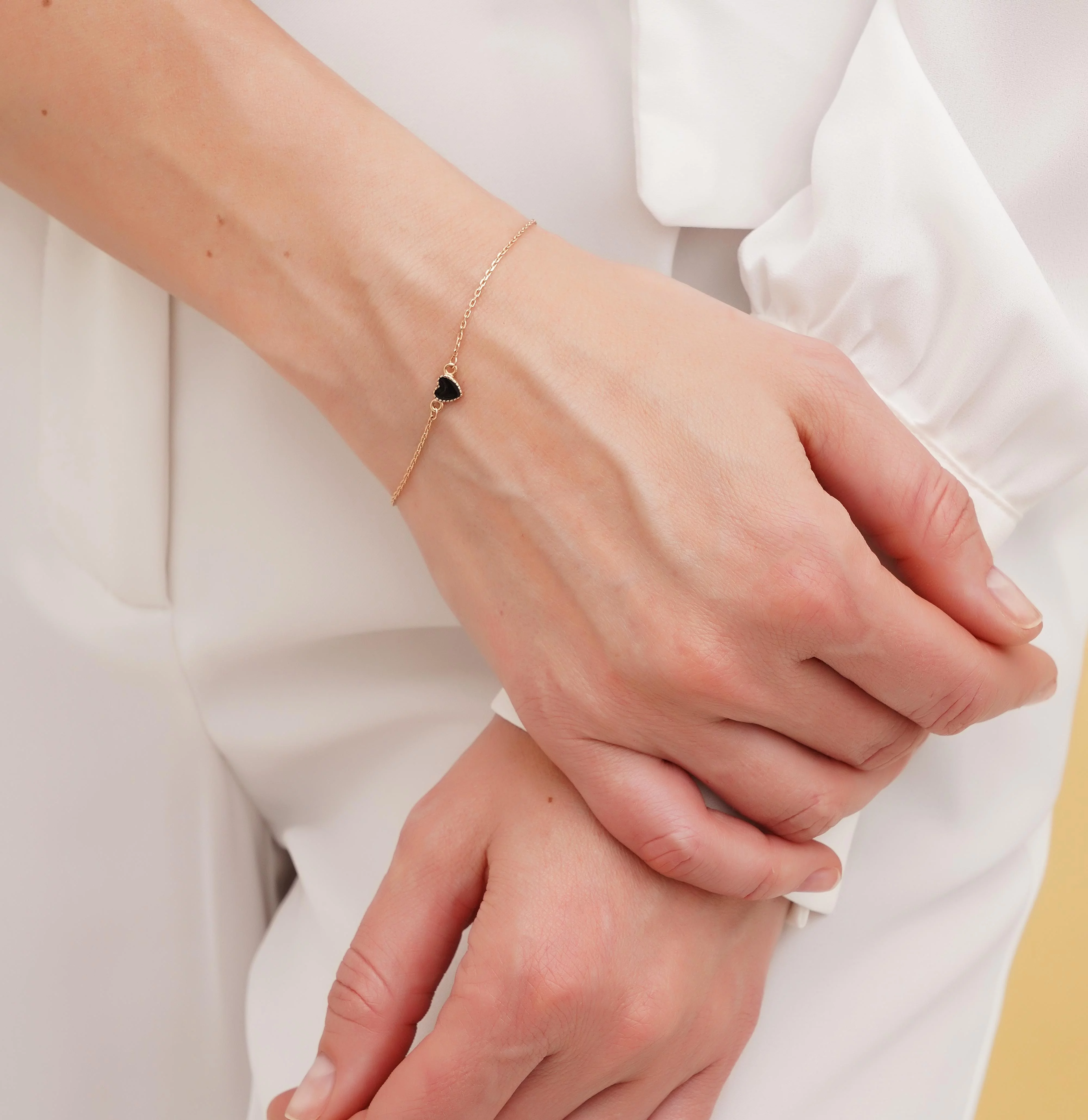 Браслет з лимонного золота подвійний "Серце" з фіанітами плетіння якір - 1824435