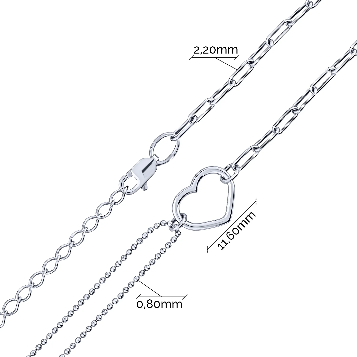 Браслет "Серце" в сріблі подвійне плетіння - 2153397