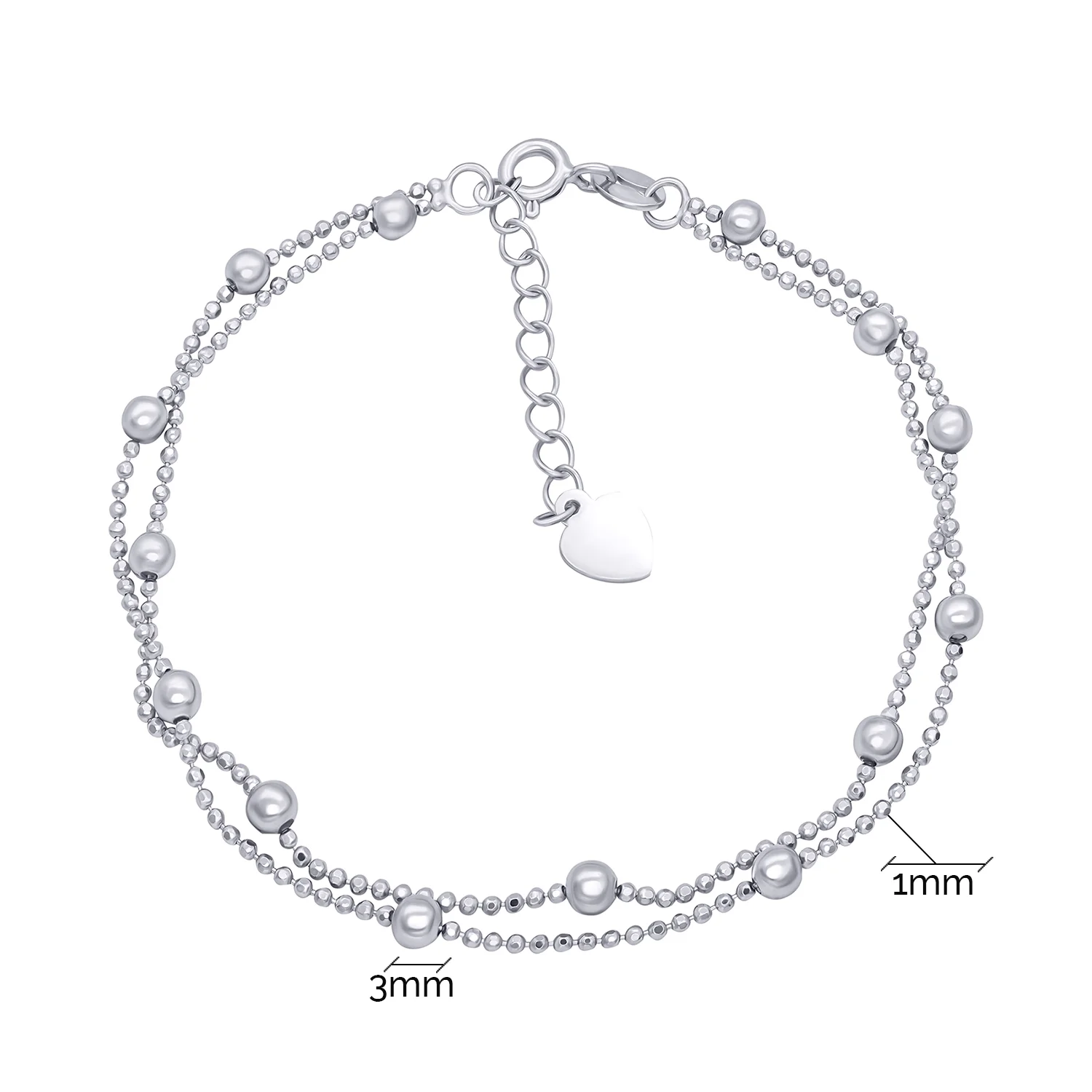 Подвійний браслет зі срібла "Серце" з кульками плетіння венеціанське та якір - 1824080