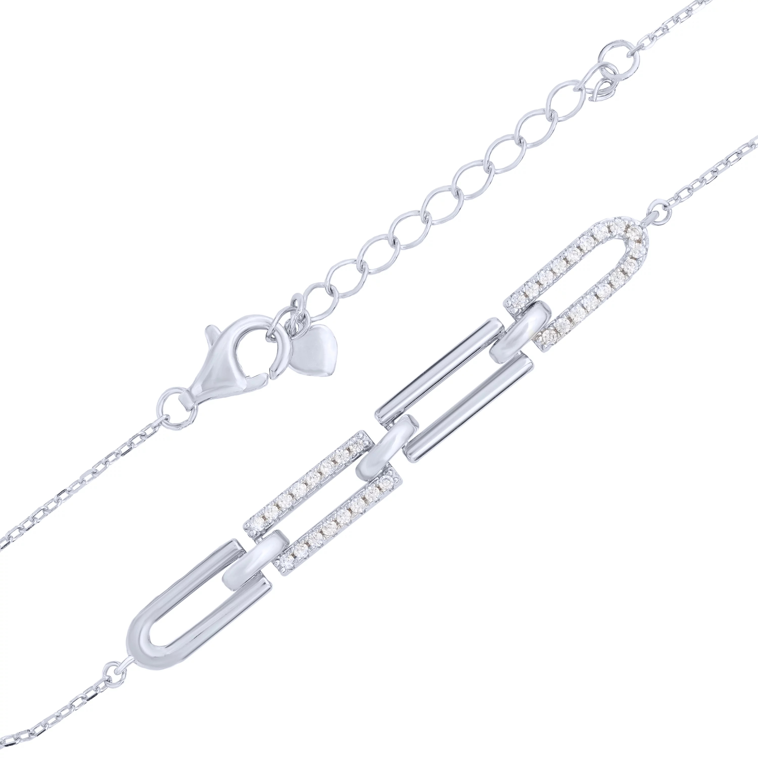 Масивний браслет "Ланки" з жовтого золота з фіанітами у якірному плетінні - 1861232