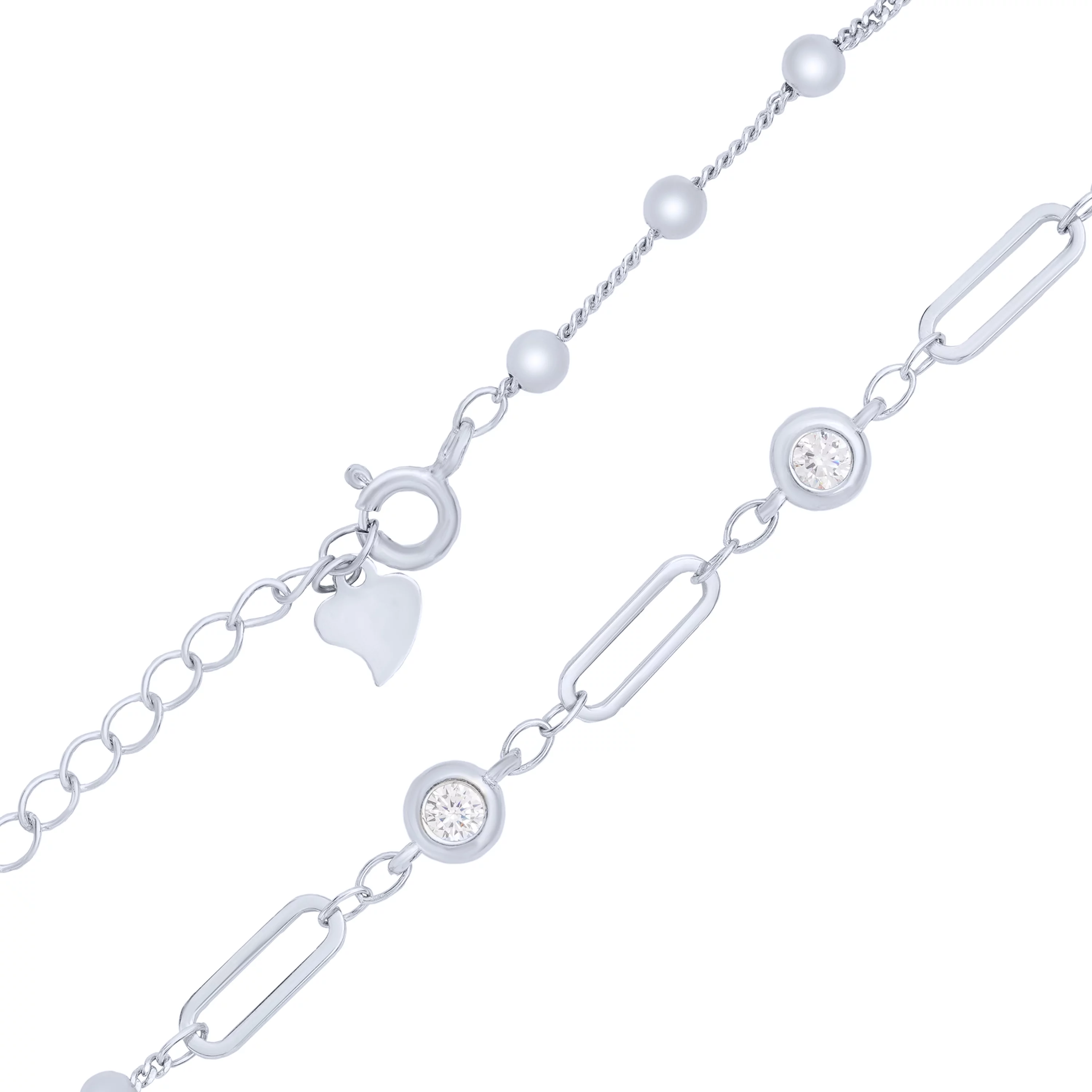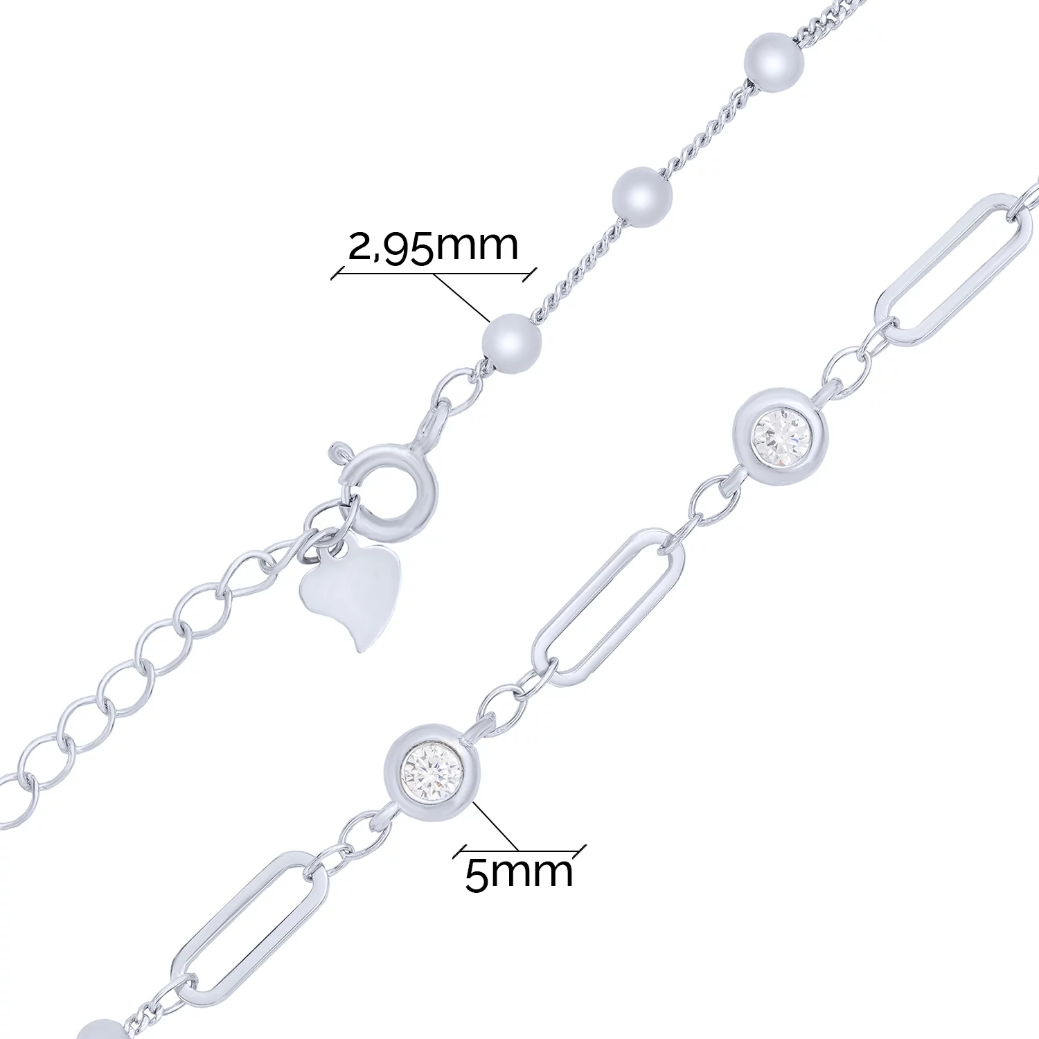 Подвійний срібний браслет з фіанітом і кульками подвійне плетіння - 1715007
