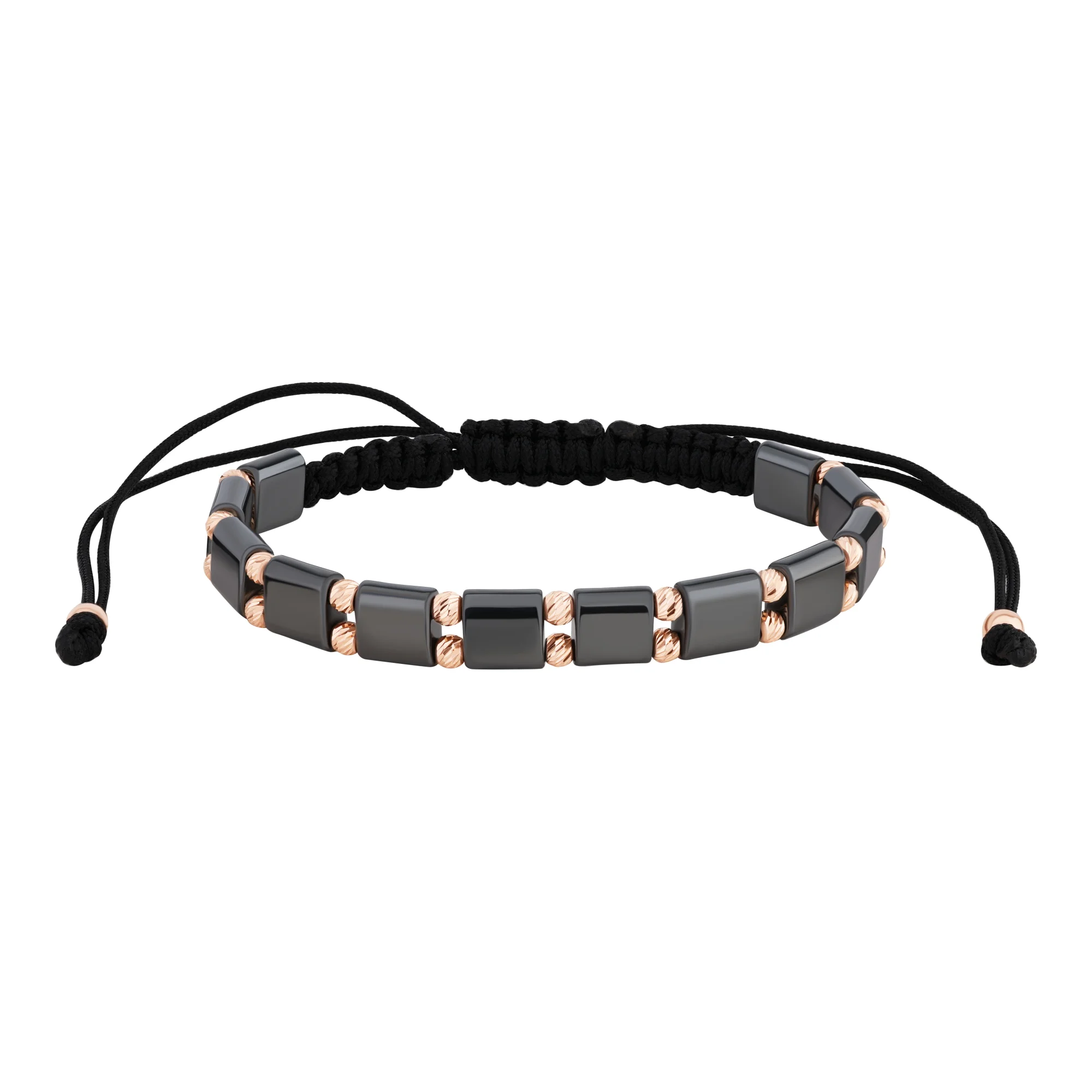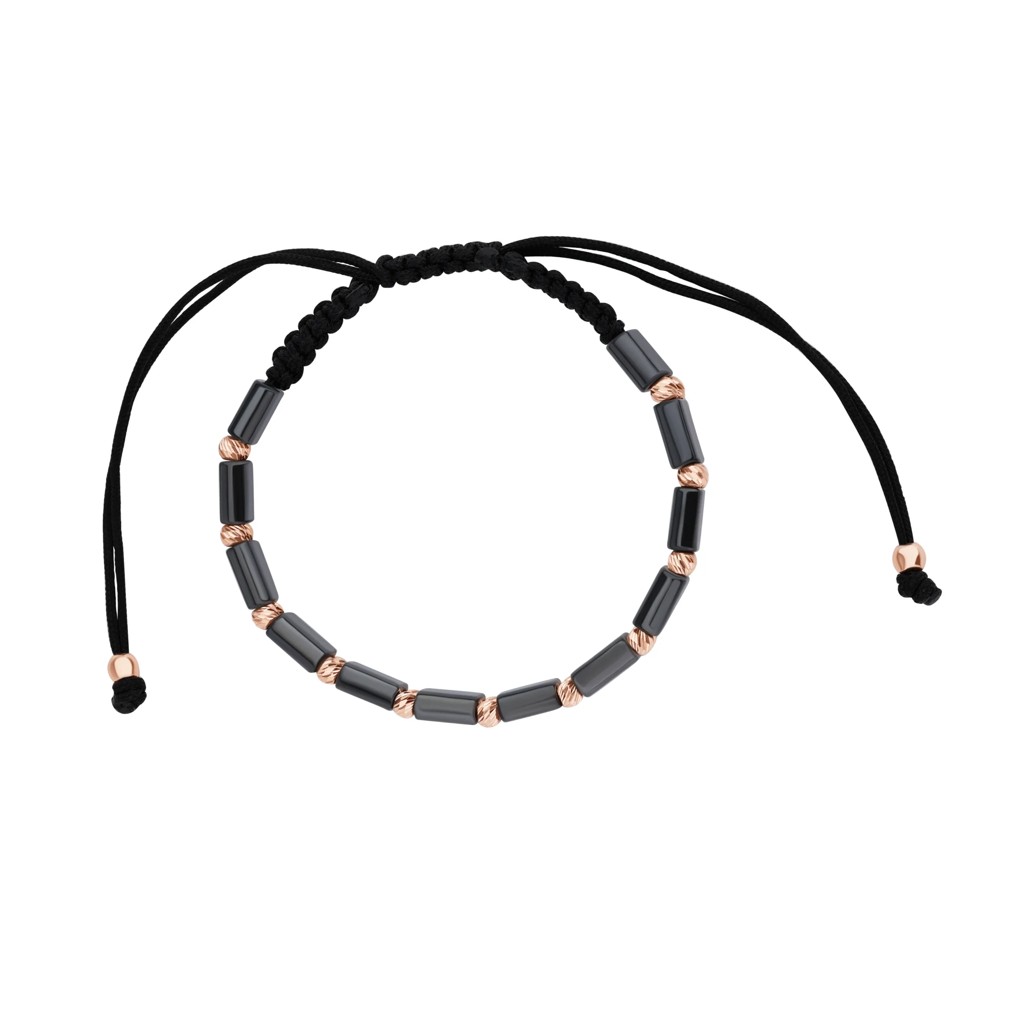 Браслет шовковий з вставками з червоного золота і гематитом - 2117865