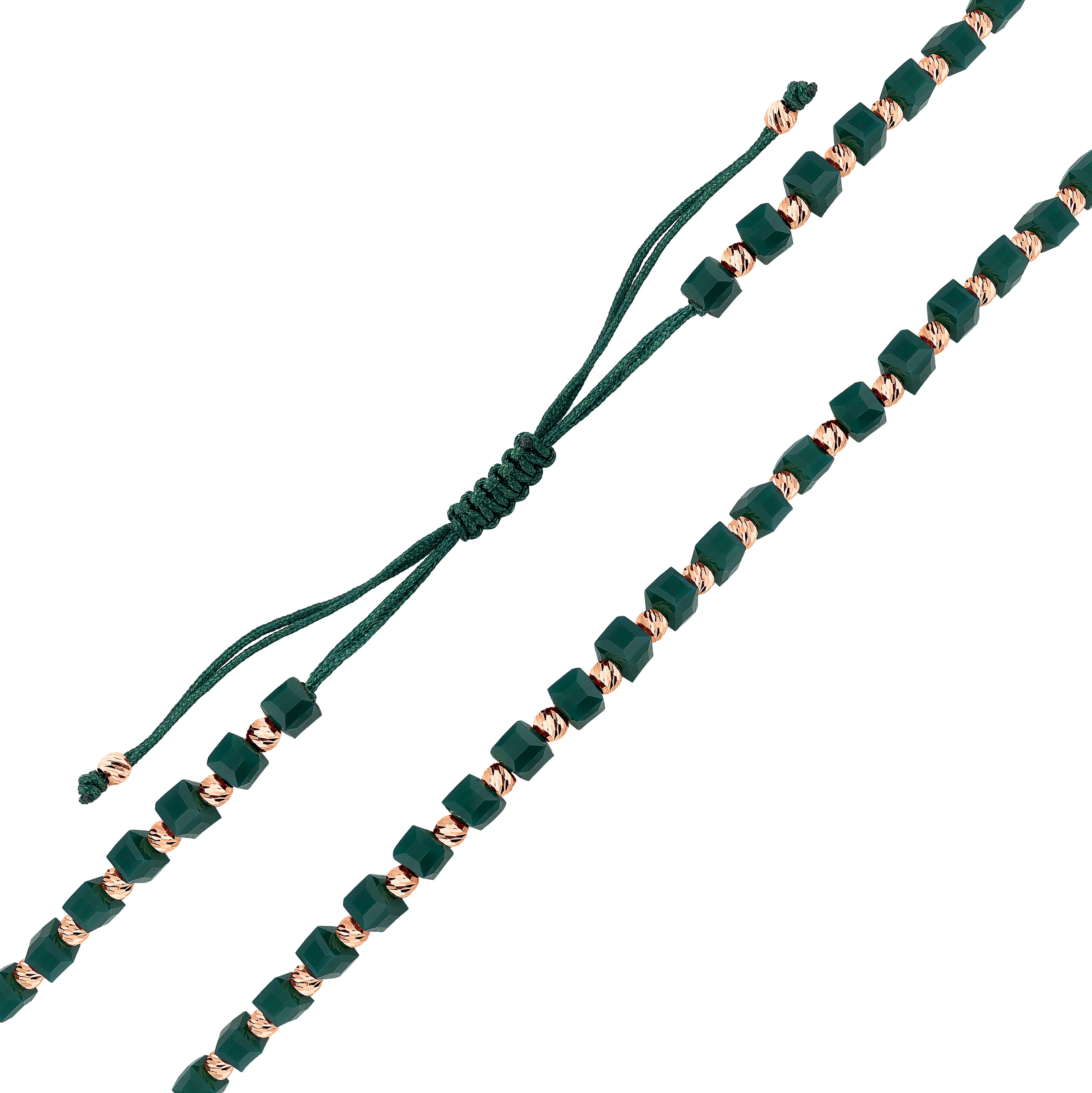 Браслет шовковий зі вставками з червоного золота та оніксом - 2115240