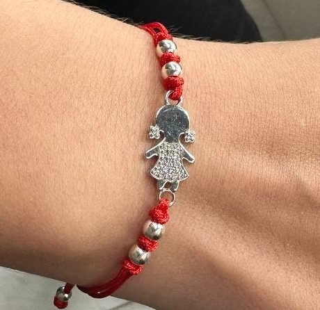 Шовковий браслет зі вставкою зі срібла "Янгол з серцем" з фіанітами - 1822264