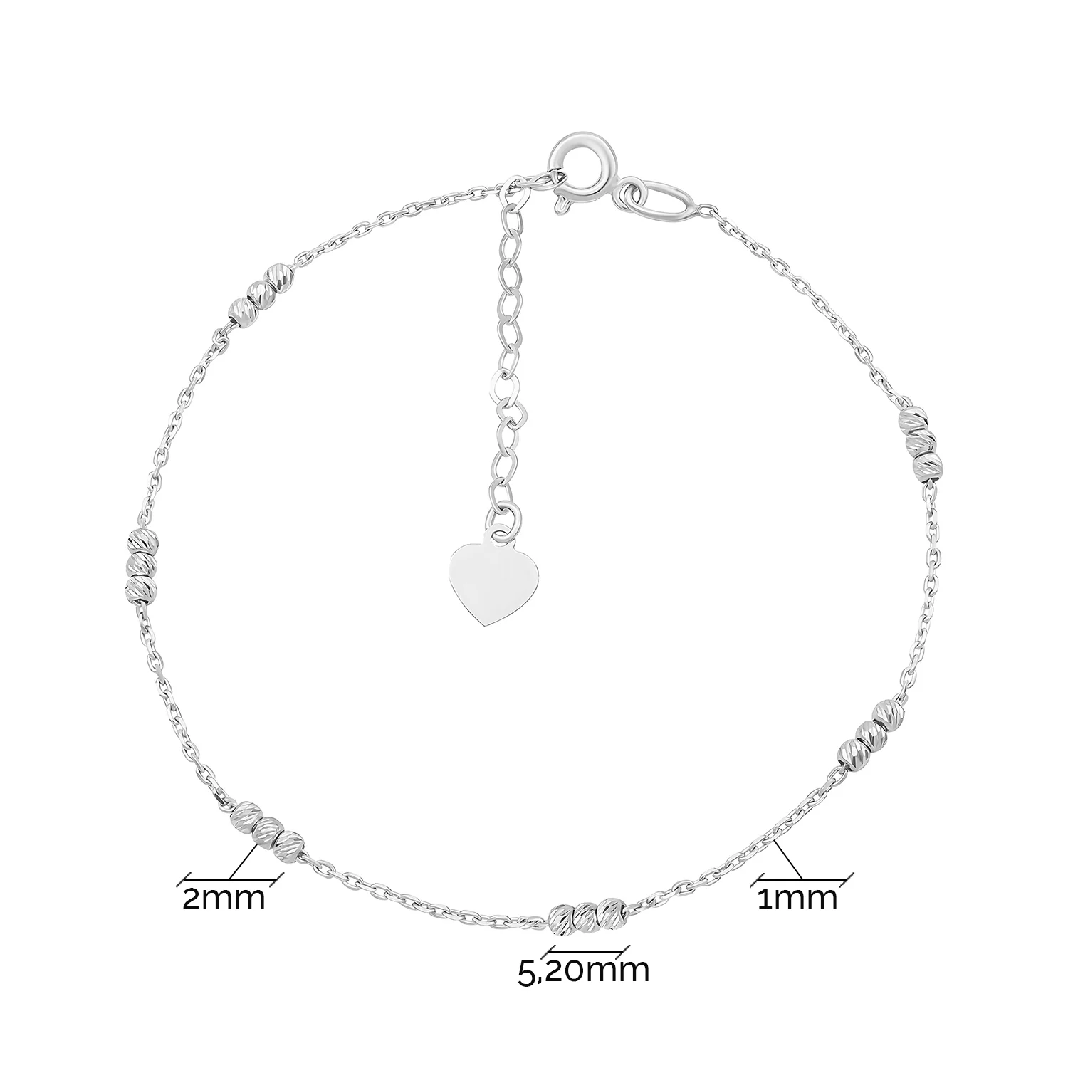 Браслет у білому золоті з кульками плетіння якірне - 1602899