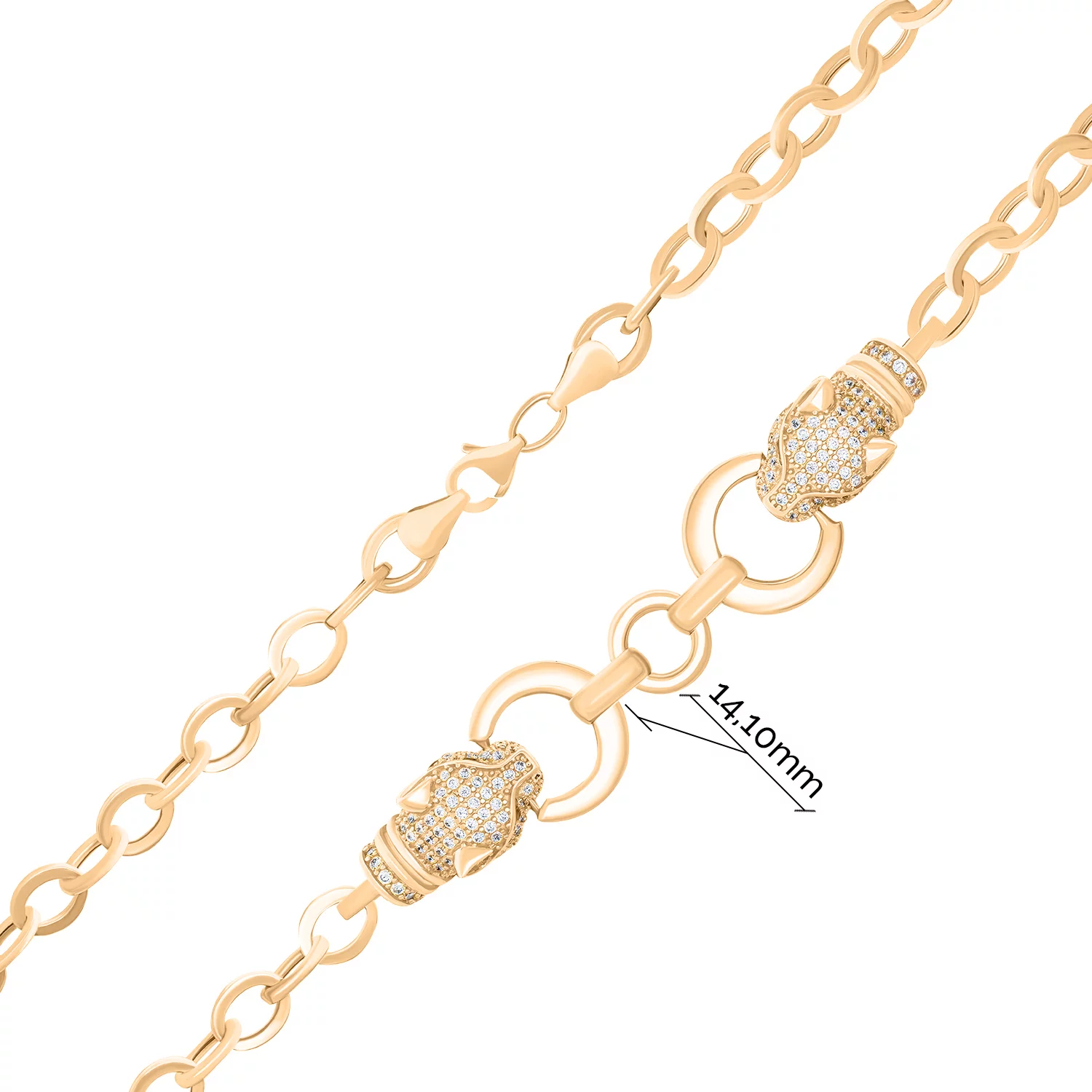Браслет з червоного золота з фіанітами "Нескінченність" у якірному плетінні - 1807384