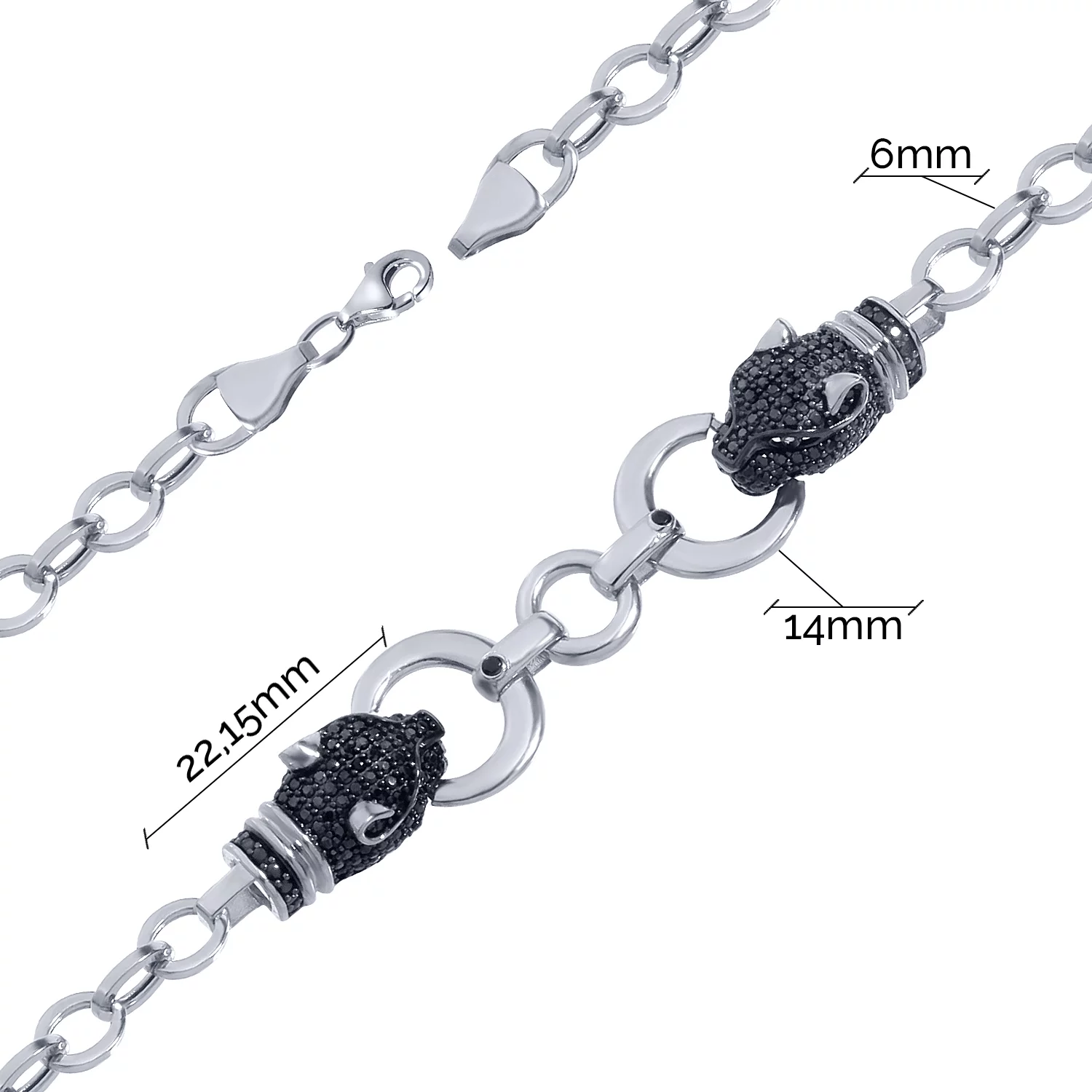 Браслет у білому золоті з фіанітами "Пантера" якірне плетіння - 1702917
