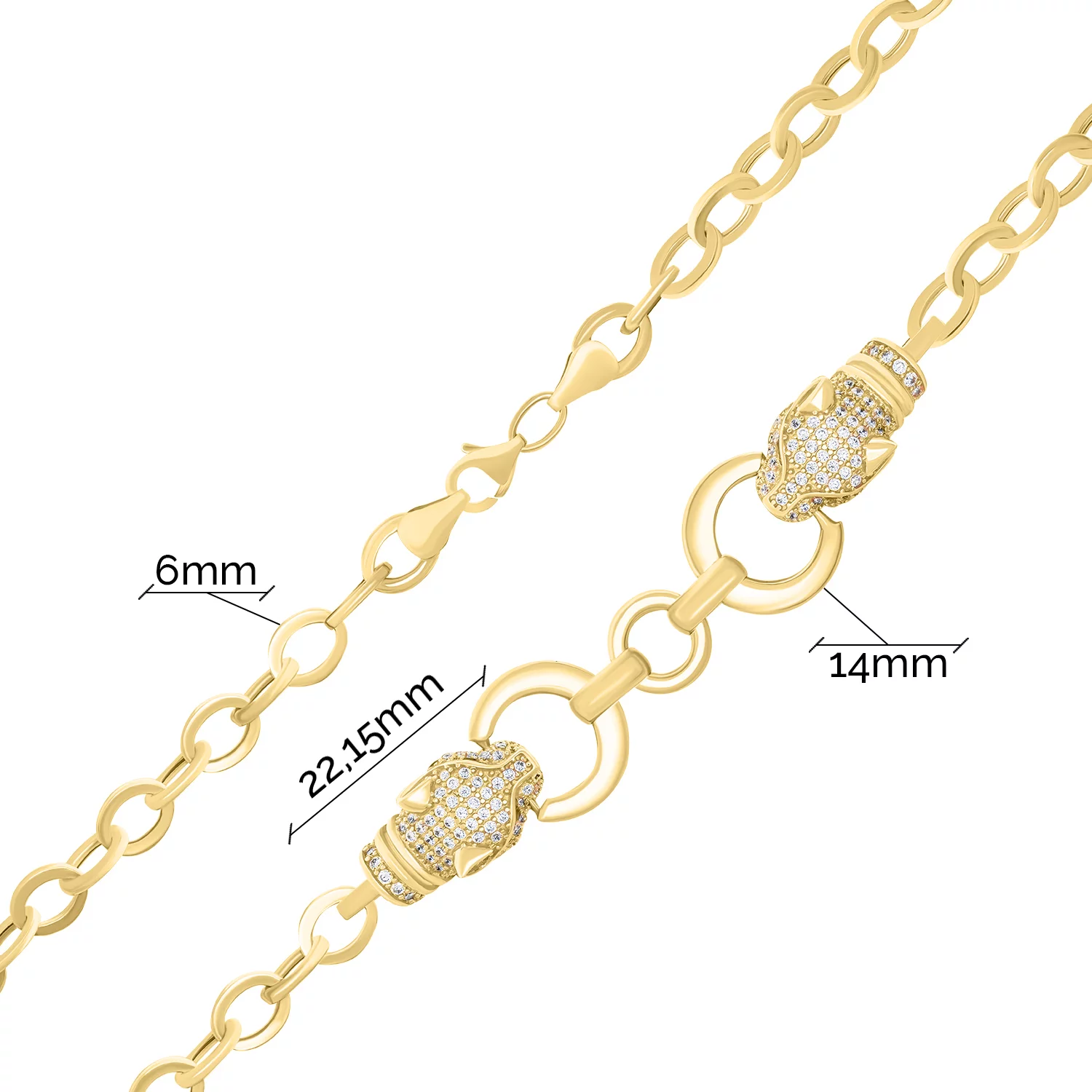 Масивний браслет "Ланки" з жовтого золота з фіанітами у якірному плетінні - 1861232