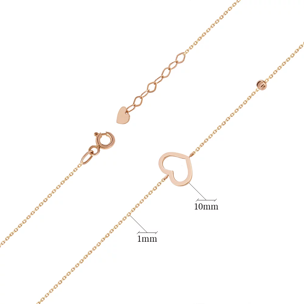 Браслет з червоного золота з підвіскою "Сердечко" плетіння якір - 1552254