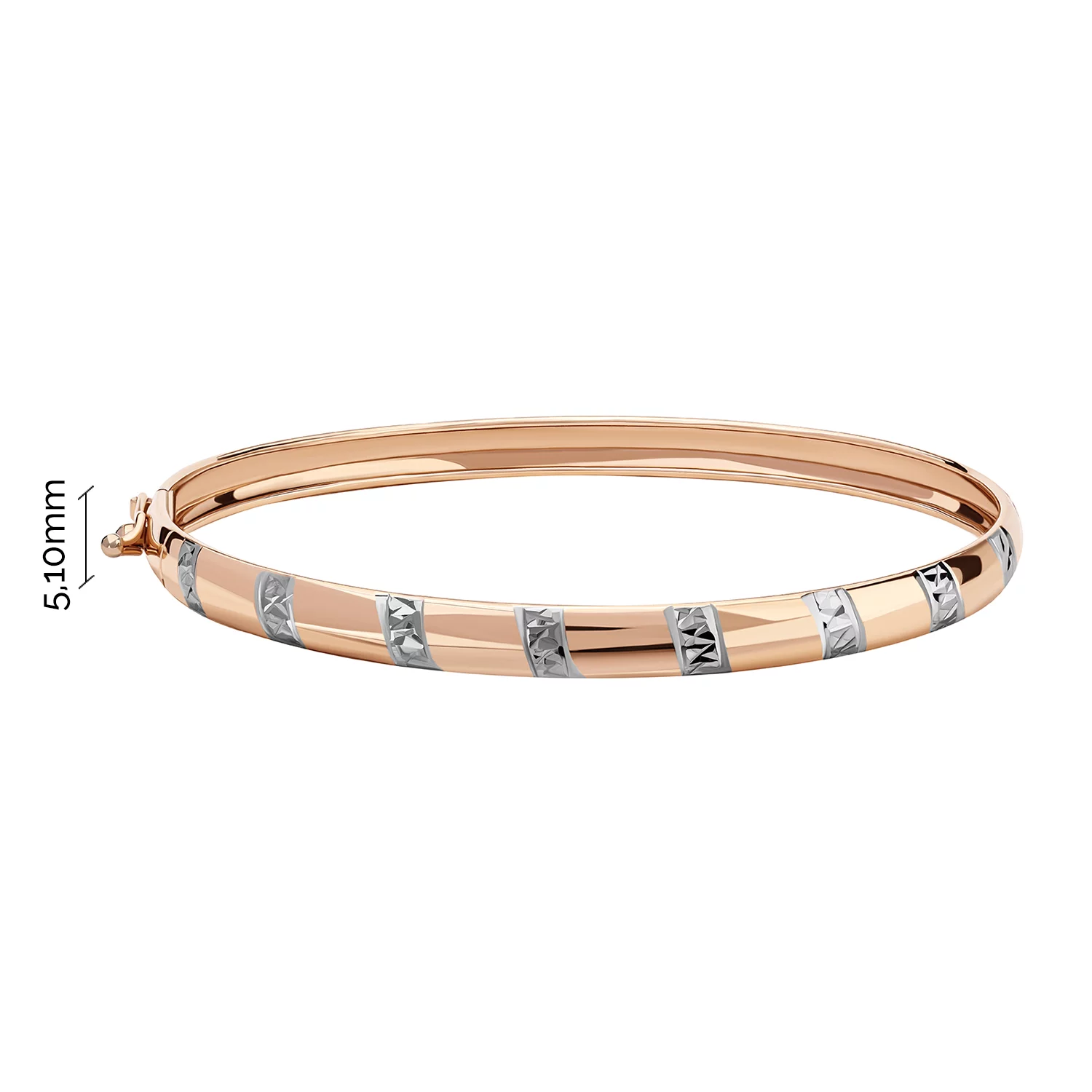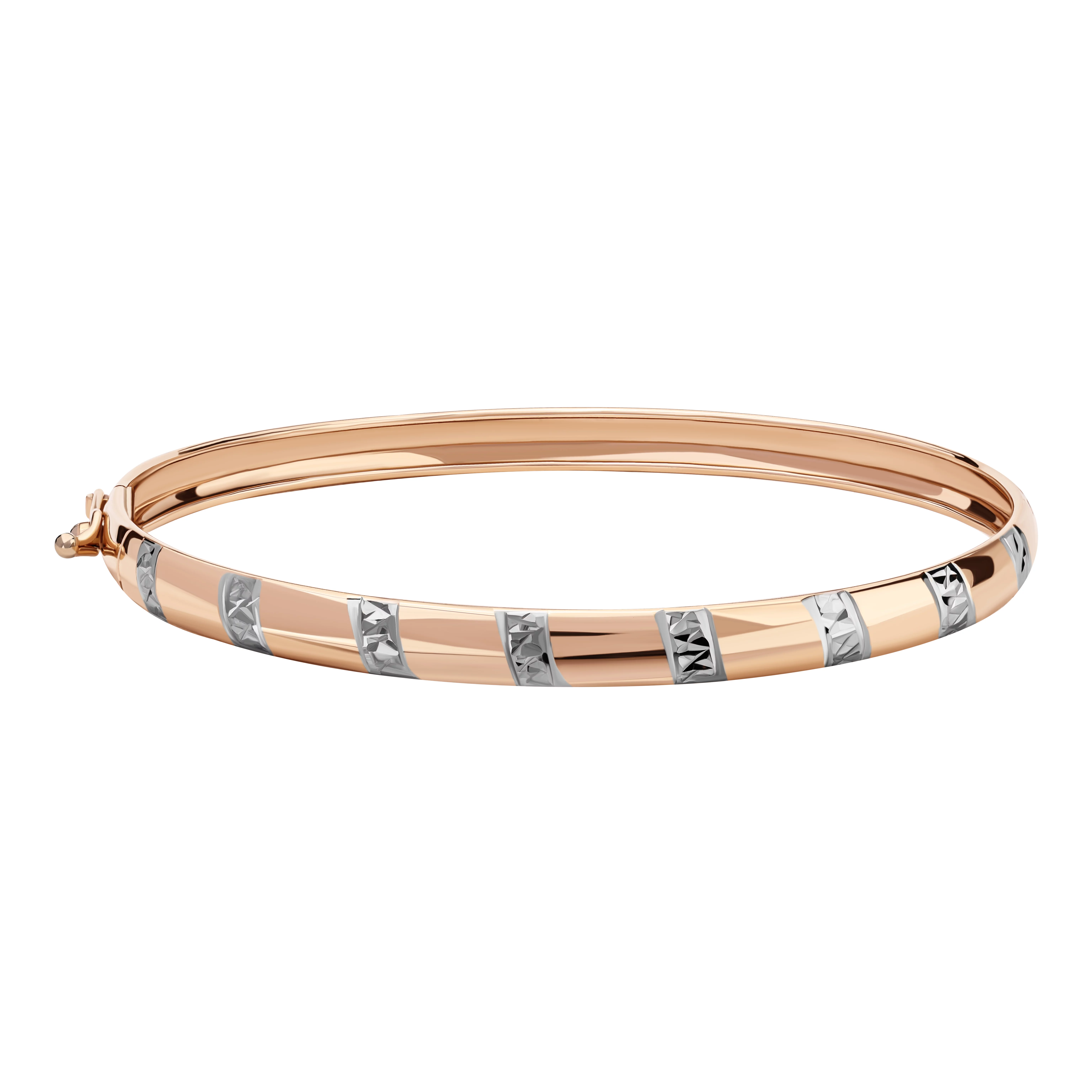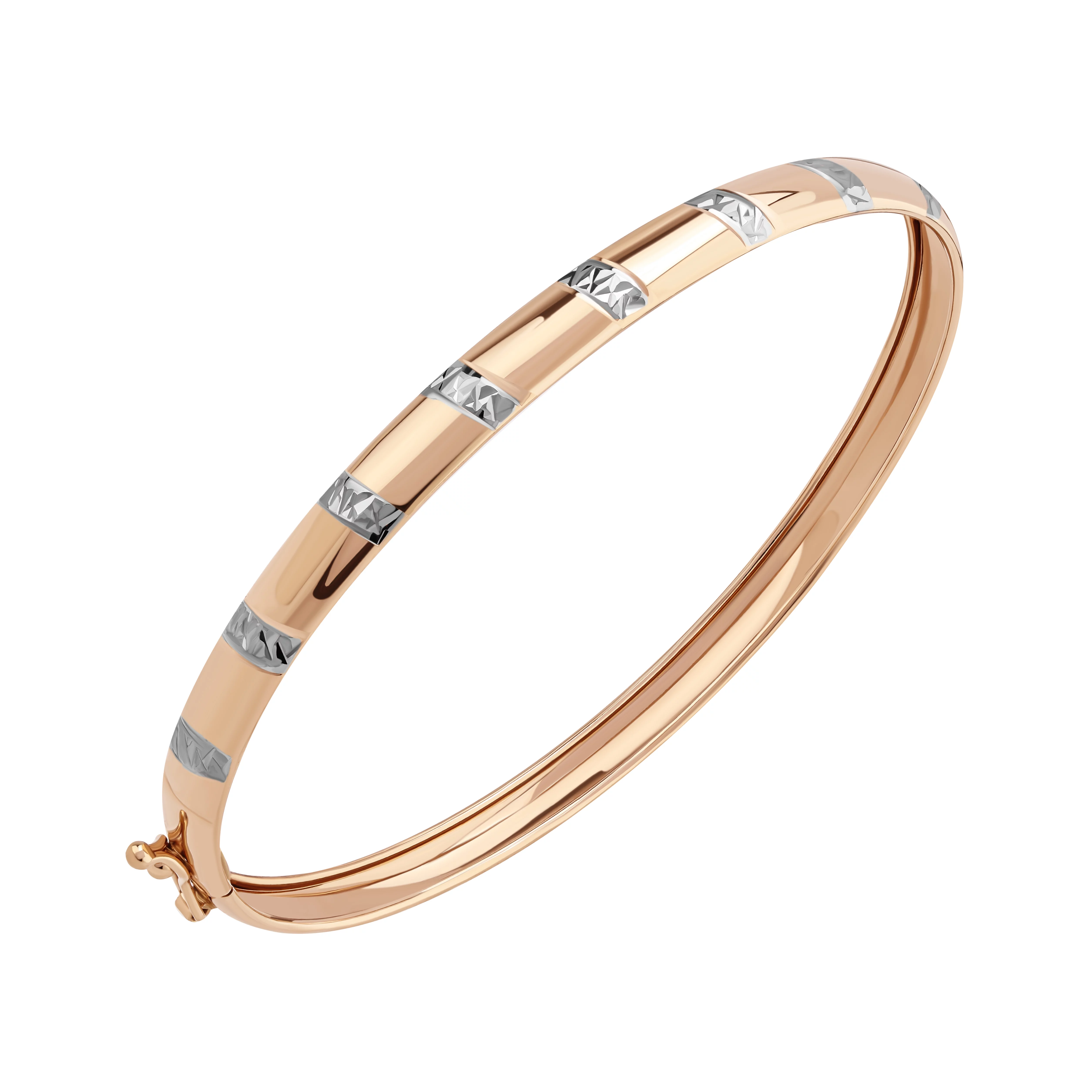 Стильний жорсткий браслет з комбінованого золота з алмазною гранню - 1859342