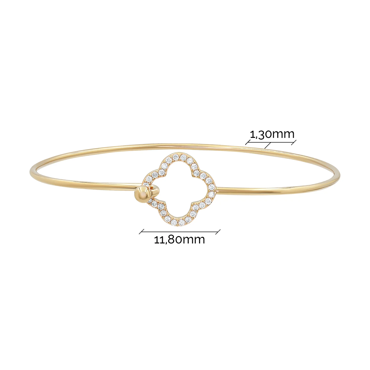 Елегантний незамкнений жорсткий браслет із жовтого золота з доріжкою з фіанітів - 1874828