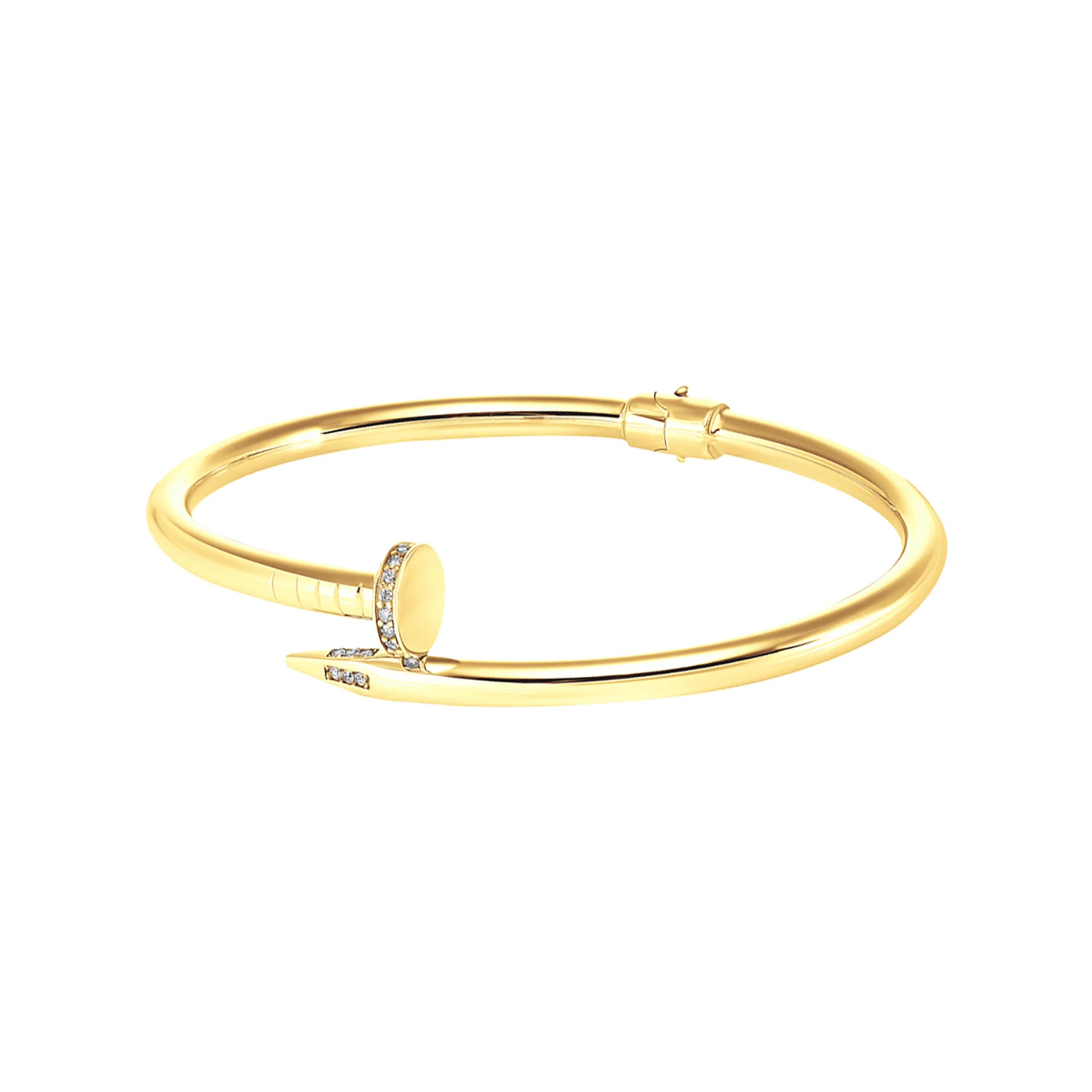 Жорсткий масивний браслет з червоного золота "Змія" з фіанітами - 1747750