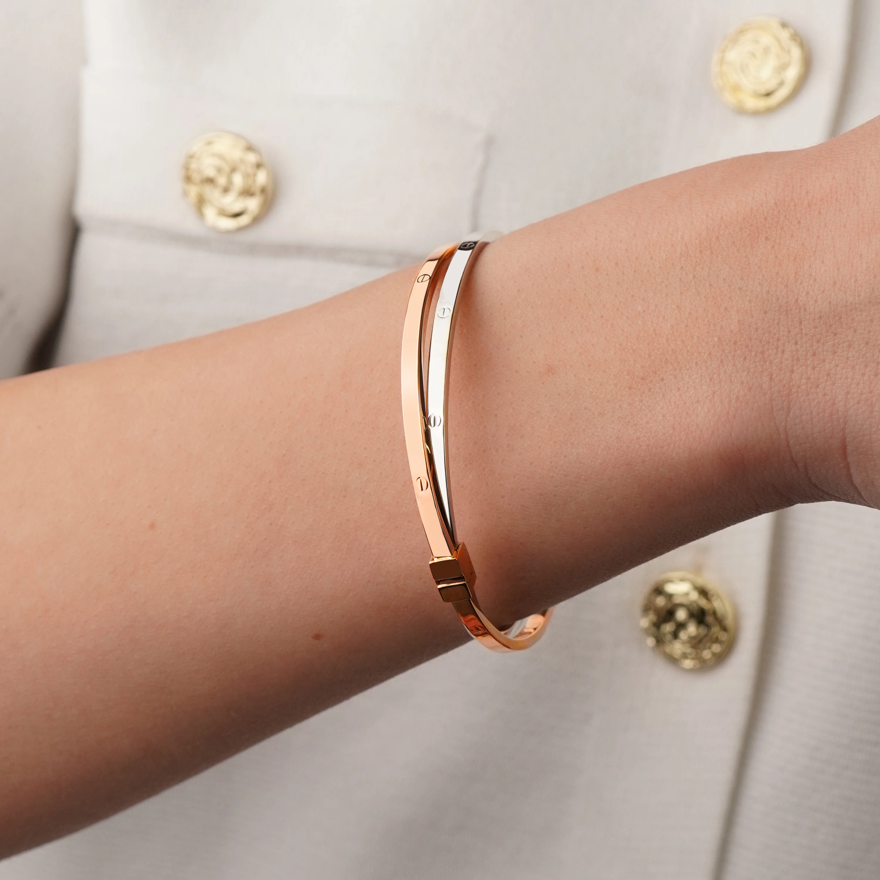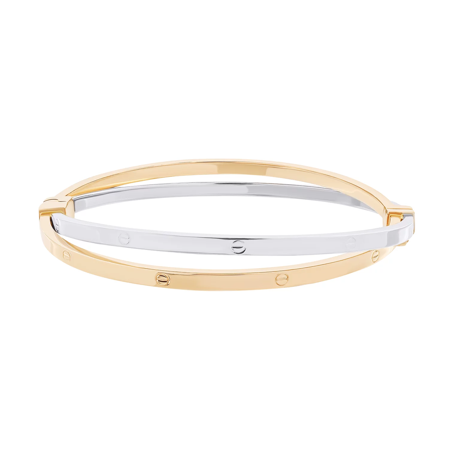 Жорсткий масивний браслет з червоного золота "Змія" з фіанітами - 1747750