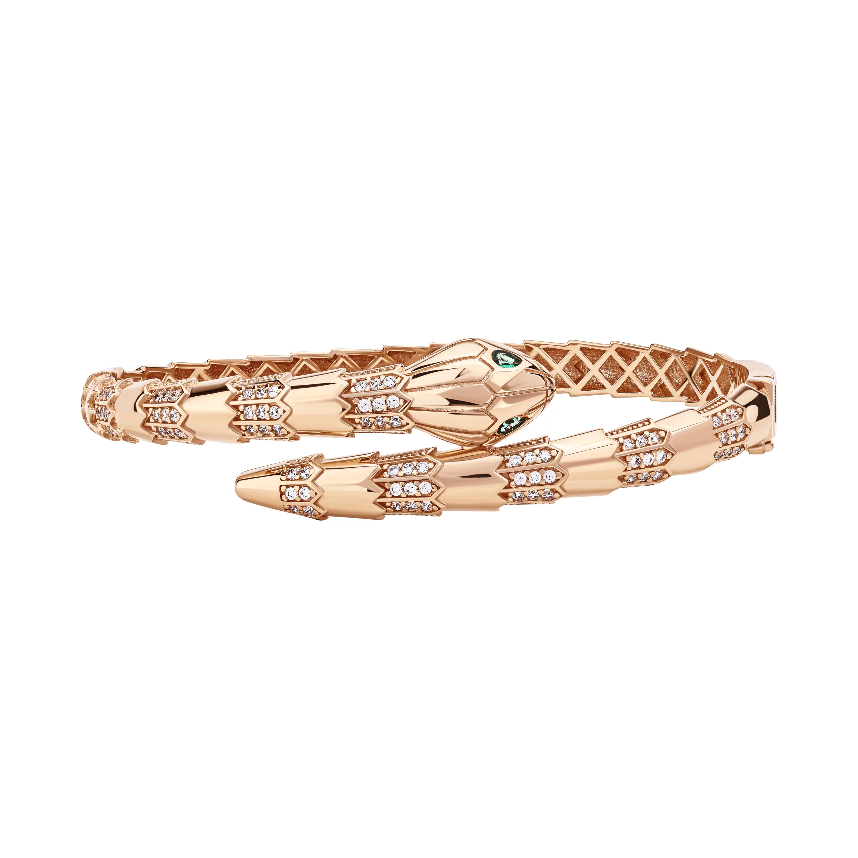 Жорсткий браслет "Змія" з червоного золота з розсипом фіанітів - 1855986