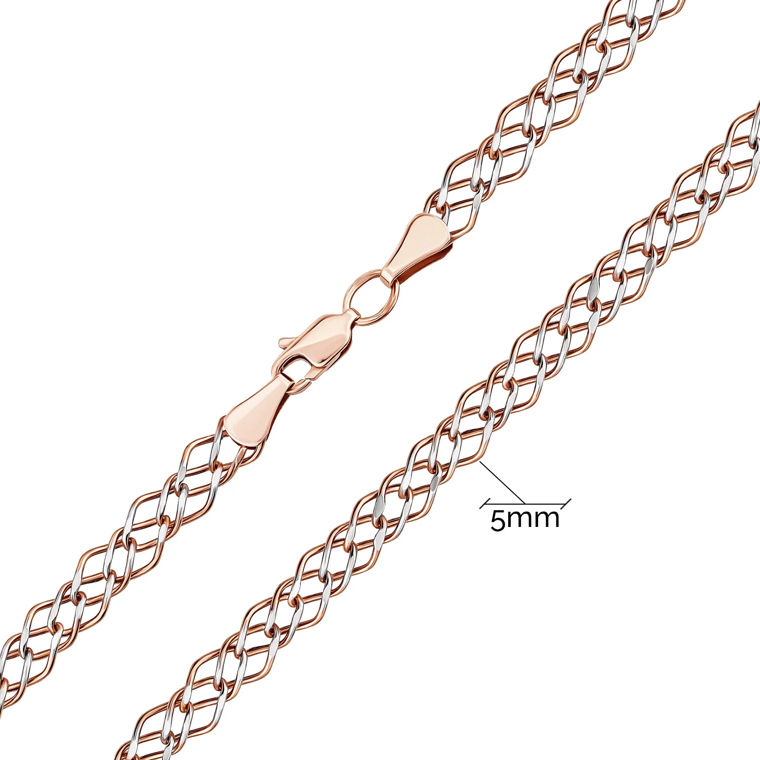 Браслет "Ключик" з підвісом із червоного золота у подвійному плетінні - 1856609