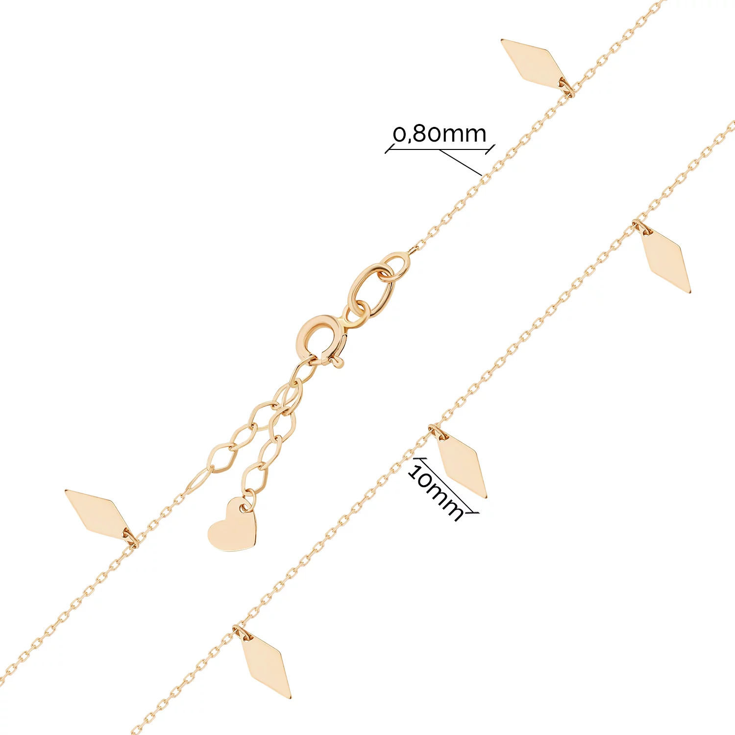 Браслет золотий з підвісками "Ромб" плетіння якірне - 1529963
