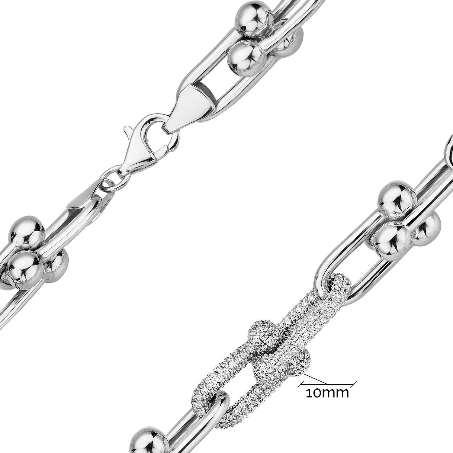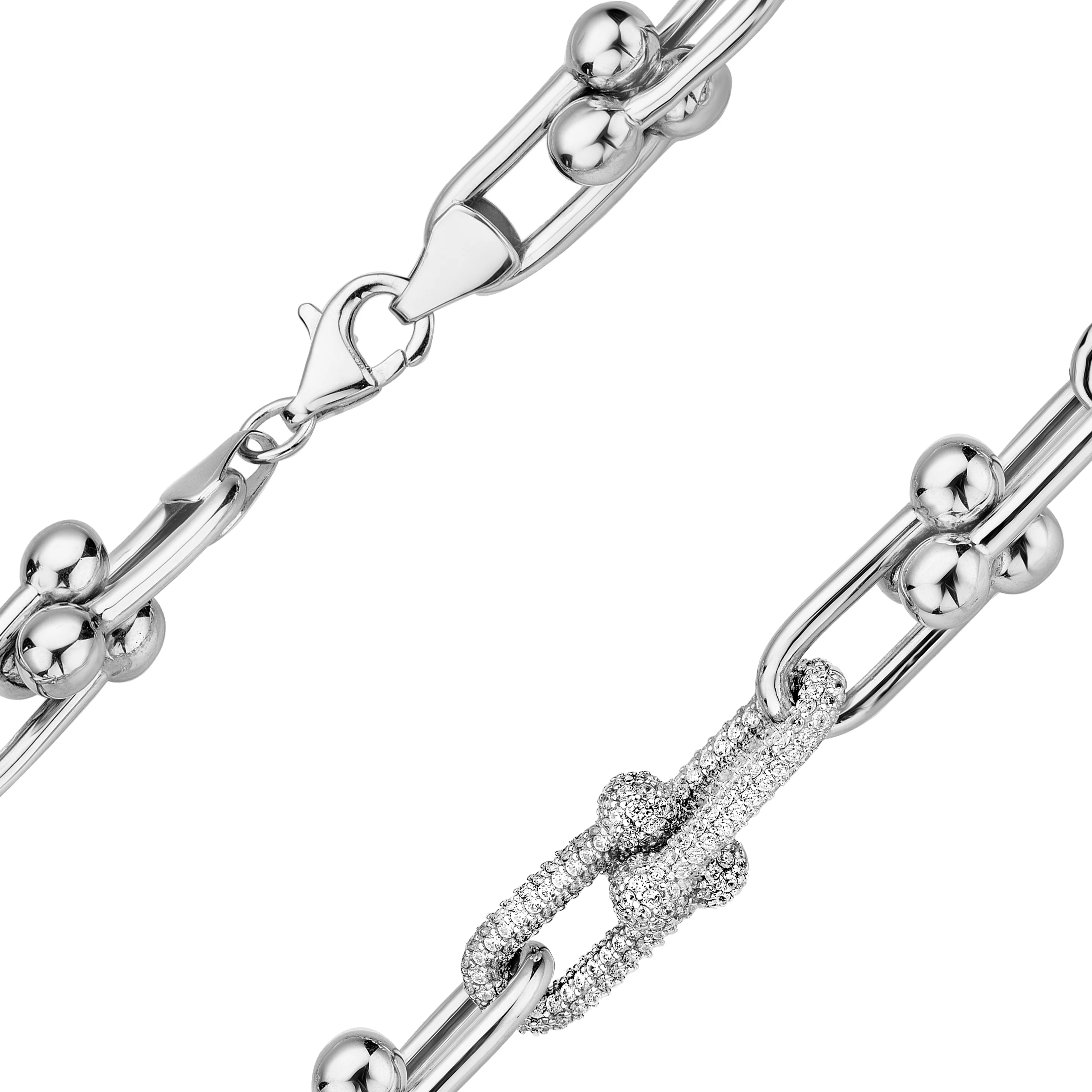 Масивний браслет "Ланки" з жовтого золота з фіанітами у якірному плетінні - 1861232