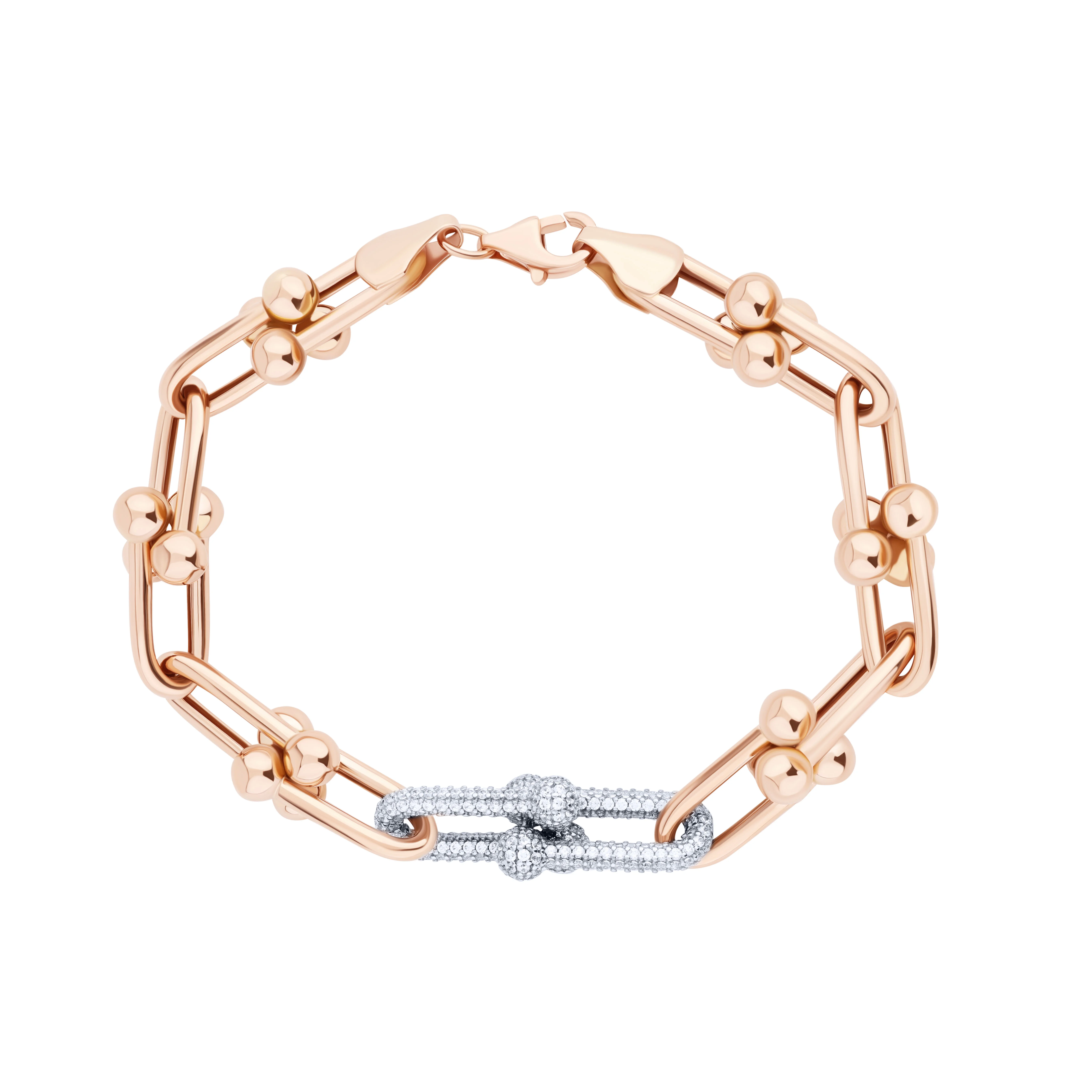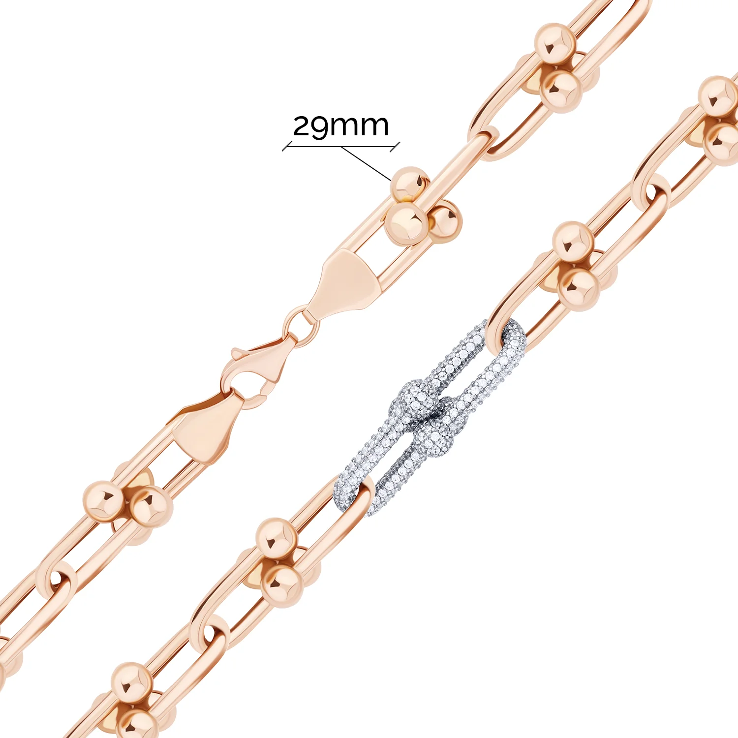 Браслет "Ланки" з фіанітами у червоному золоті якірне плетіння - 2093465