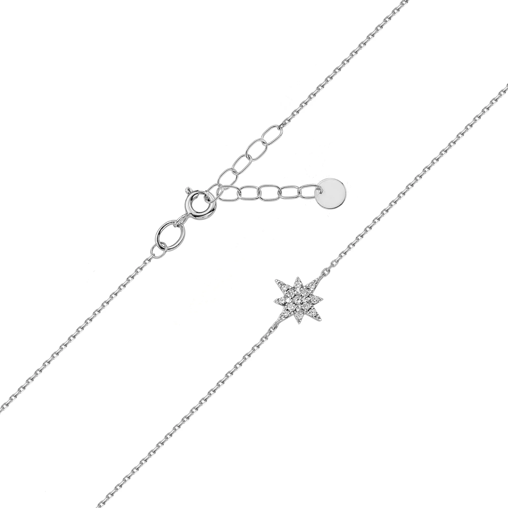 Браслет "Зірка" з білого золота з діамантами плетіння якір - 2150121