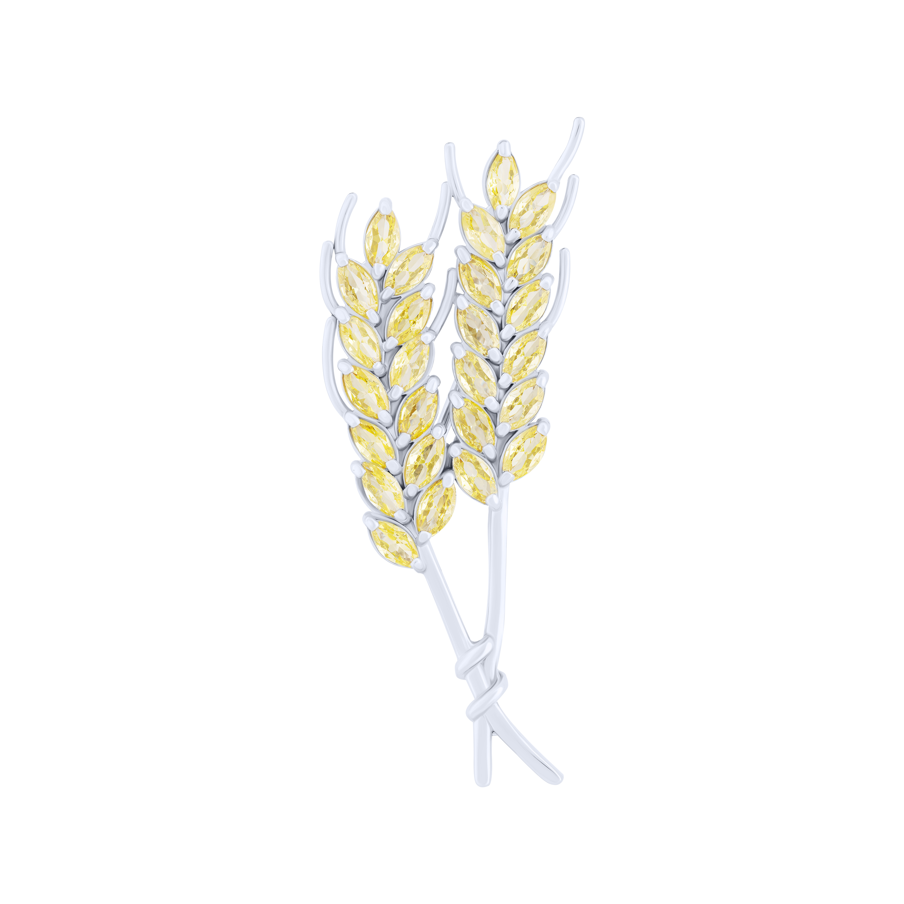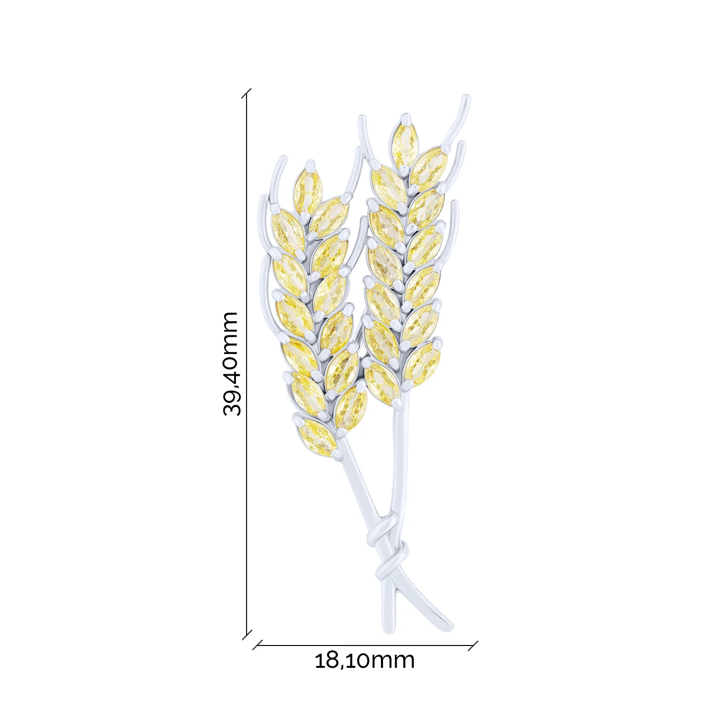 Брошка "Колоски" зі срібла з фіанітами - 2132243