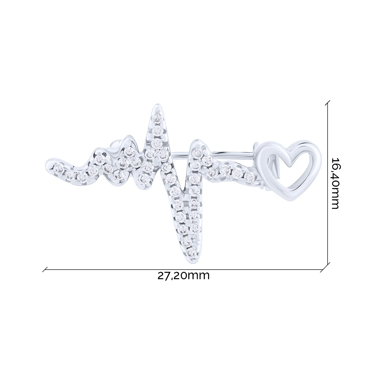 Брошка "Серцебиття" зі срібла з фіанітами - 2132237