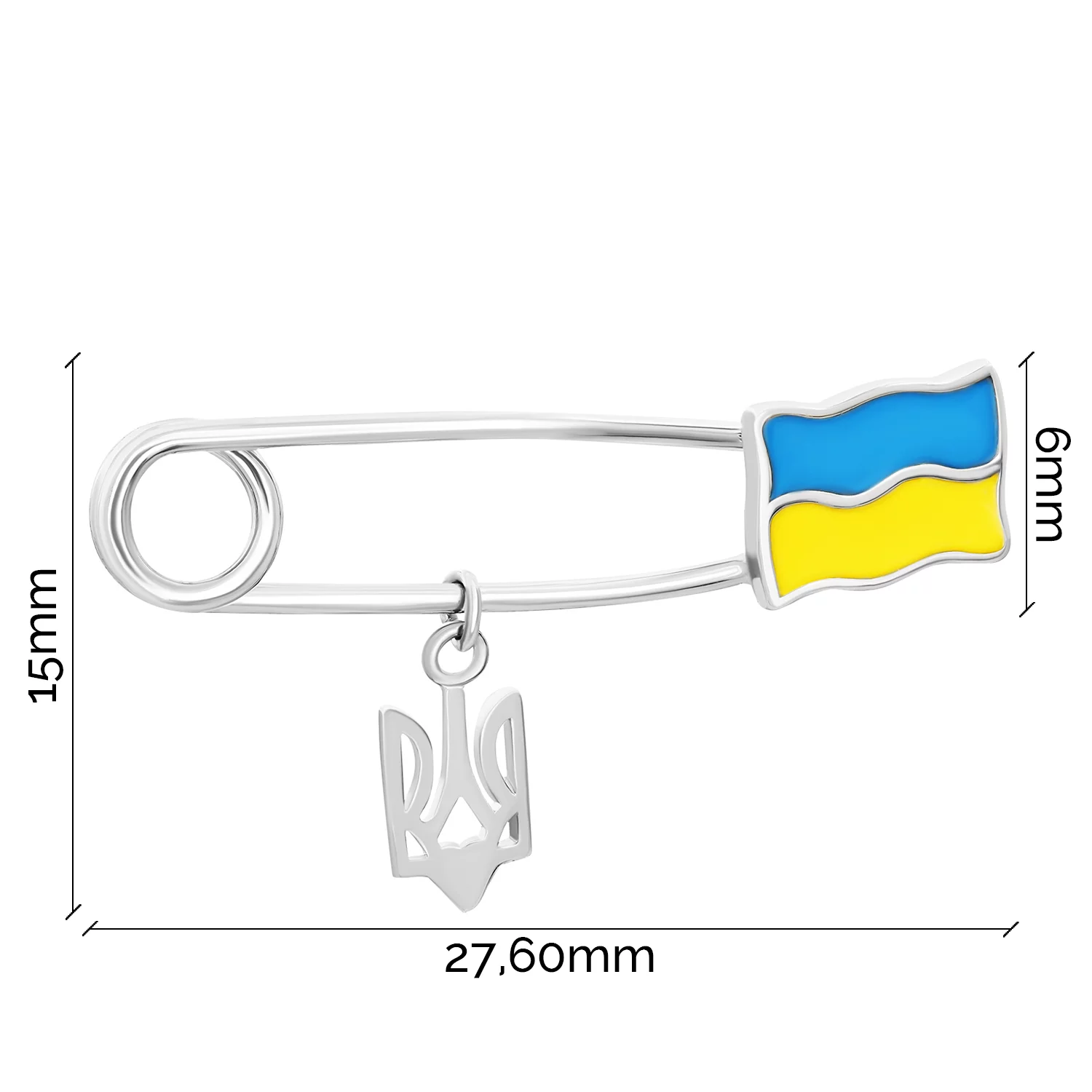 Шпилька зі срібла з підвіскою "Герб України-Тризуб" з емаллю - 1565372